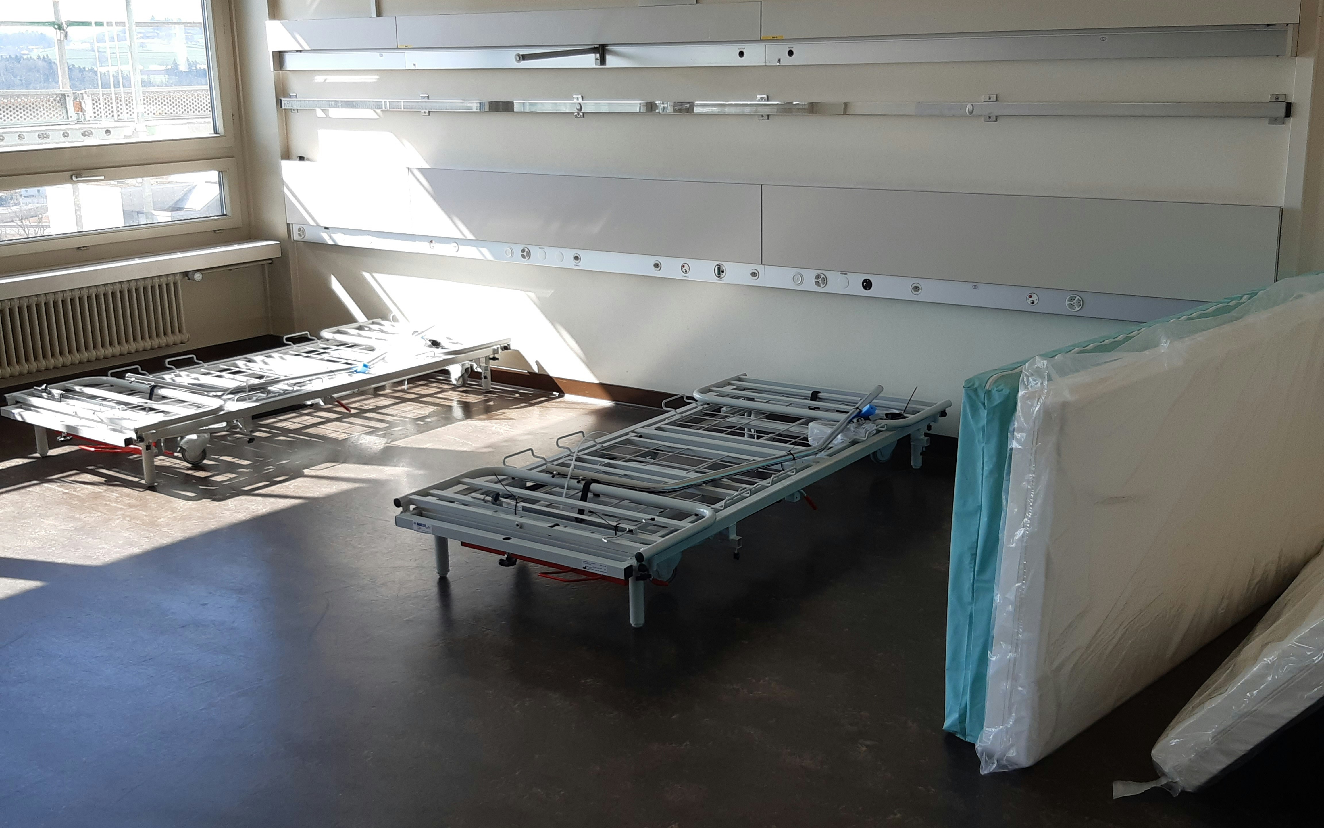 Der Betrieb des Bettenhauses wird wieder stufenweise hochgefahren. Ab dem 1. April sollen 100 zusätzliche Pflegebetten, ab dem 8. April dann 200 Betten zur Verfügung stehen. Die 200 Betten werden von der Armee zur Verfügung gestellt. Geliefert werden sie von Angehörigen des Spitalbataillons 75, installiert vom Zivilschutz.