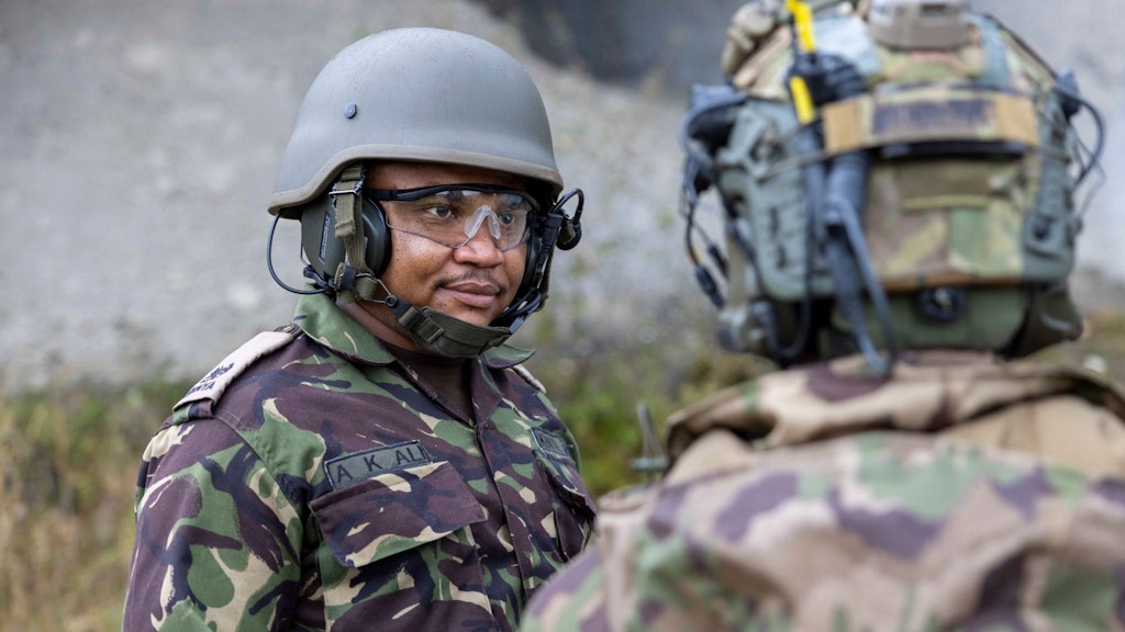 Auf Einladung des Kompetenzzentrums SWISSINT und in enger Absprache mit dem Kommando KAMIR konnte sich ein kenianischer Offizier, der am International Peace Support Training Centre (IPSTC) als Instruktor für Kampfmittelbeseitigung tätig ist, mit seinen Schweizer Berufskollegen austauschen. Dies war für beide Seiten eine interessante und lehrreiche Erfahrung. Major Ali Abdulkadir erhielt einen Einblick in die Ausbildung, begleitete die Schweizer Kampfmittelbeseitiger bei Einsätzen als Beobachter und sammelte zwei Tage lang Eindrücke vom Kurs Hostile Environment Awareness Training (HEAT), der vom Ausbildungszentrum SWISSINT durchgeführt wird. Beim HEAT handelt es sich um einen internationalen Grundkurs für spezifische sicherheitsrelevante Belange in Krisengebieten, der sich an Zivilpersonen und Militärangehörige richtet und diese auf geplante Aufenthalte in Krisengebieten vorbereitet. Unter den Teilnehmenden befanden sich auch zwei Kampfmittelbeseitiger des Kommandos KAMIR, die für ihre Auslandeinsätze im Rahmen der militärischen Friedensförderung ausgebildet wurden.