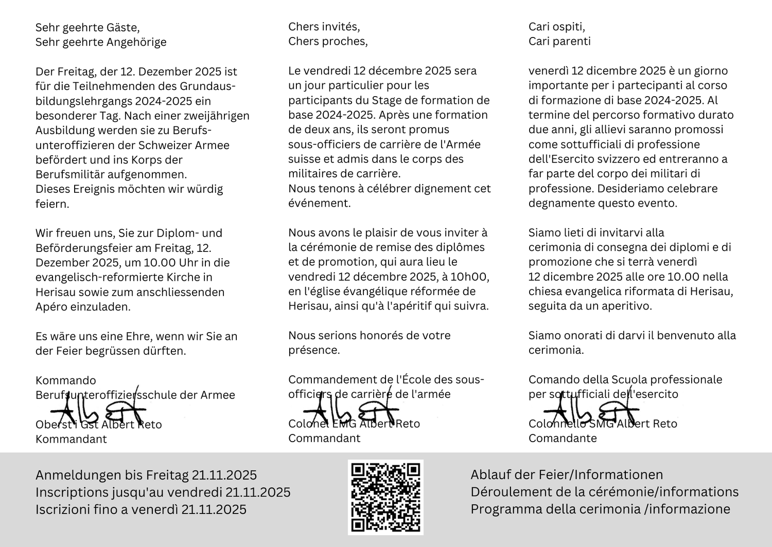 Musik und Abmarsch der beförderten BerufsunteroffiziereAnmeldeschluss: Freitag 21.11.2025