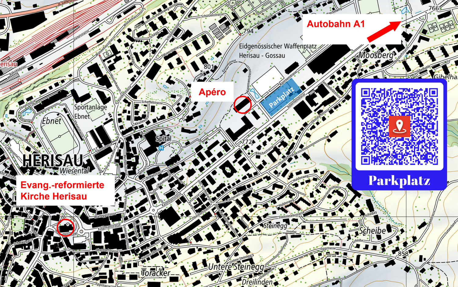 Es stehen kostenlose Parkplätze zur Verfügung bei der Kaserne Herisau (gem Karte)