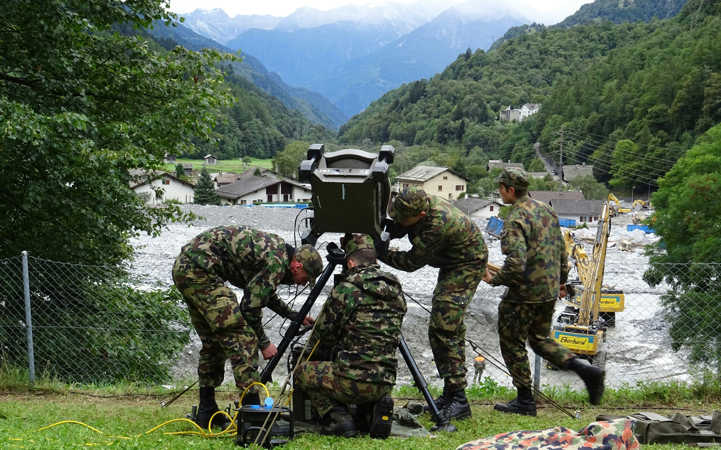 So bald wie möglich stellt die Schweizer Armee in Bondo diverse Telekommunikations- und Notstromverbindungen auf. Dies, nachdem weitere Murgänge in der Nacht auf Freitag bestehende zivile Einrichtungen zerstört haben.