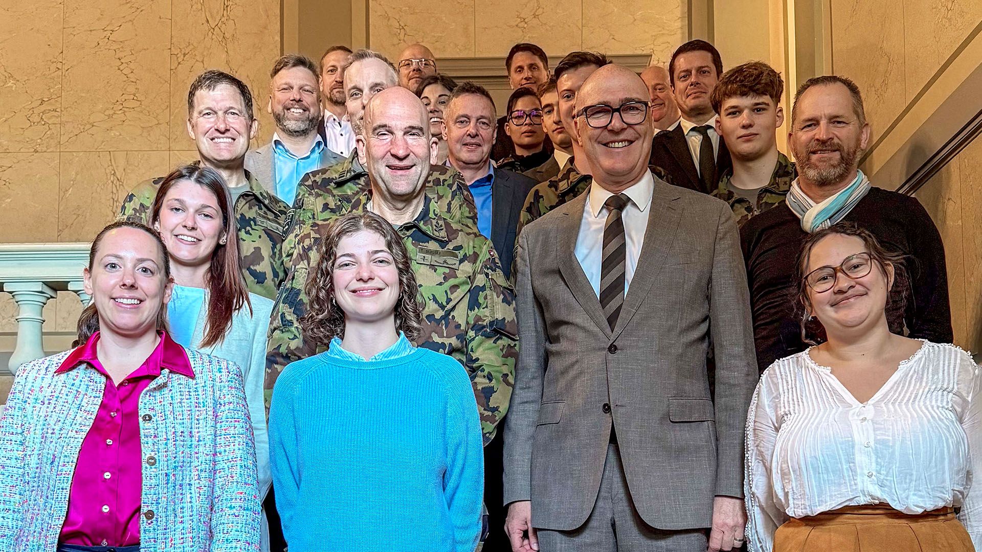 Am 8. April 2025 besuchte der Chef des Eidgenössischen Departements für Verteidigung, Bevölkerungsschutz und Sport (VBS), Bundesrat Martin Pfister, die Mitarbeitenden des Stabs des Chefs der Armee. Bei diesem Austausch im Bundeshaus Ost konnten die Mitarbeitenden der Schweizer Armee dem neuen Chef VBS einen Einblick in ihre Arbeit geben und mit ihm über verschiedene Themen diskutieren.