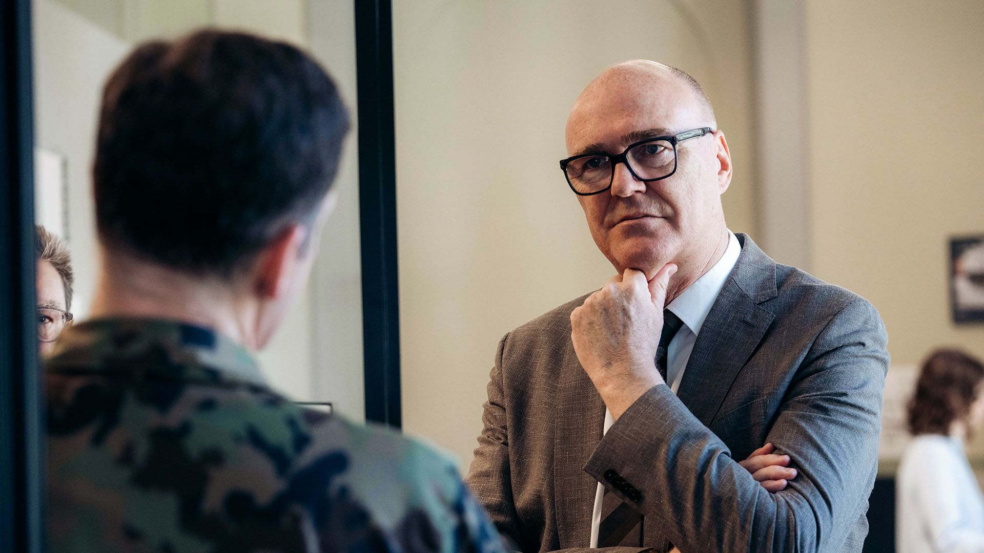 Bundesrat Martin Pfister hat die Leitung des VBS am 1. April 2025 übernommen. Das VBS ist das grösste Departement. Deshalb möchte der neue Bundesrat sich Zeit dafür nehmen, die Mitarbeiterinnen und Mitarbeiter der verschiedenen Ämter kennenzulernen und sich mit ihrer Arbeit vertraut zu machen. Am 8. April 2025 besuchte er den Stab CdA. Weitere Besuche werden in den kommenden Monaten folgen.