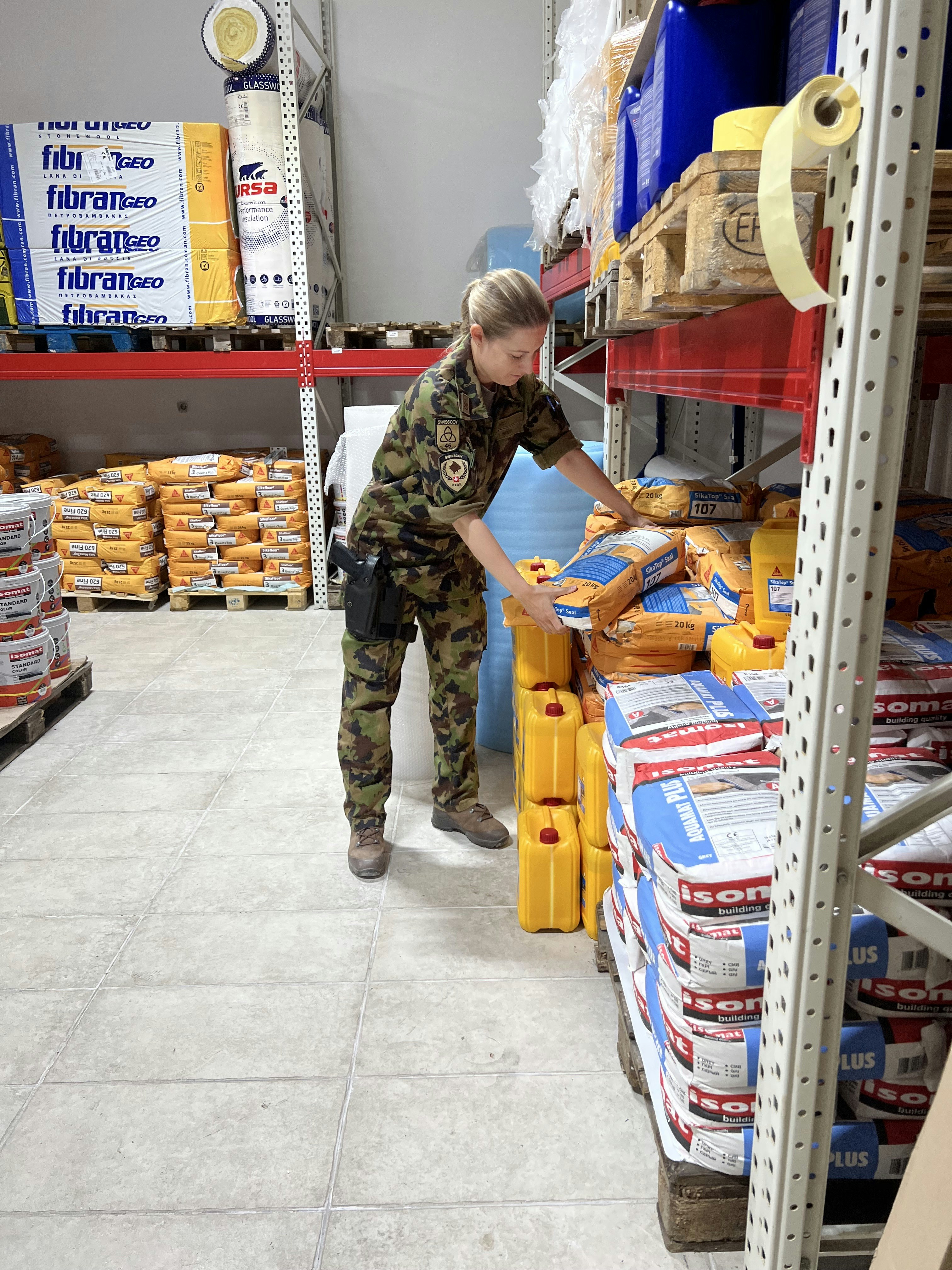 Als Chefin Einkauf ist sie im Einsatzraum für die Beschaffung der verschiedensten Artikel zuständig und sie ist ebenso die Ansprechperson von den im Land verstreuten Lieferanten. In ihrer Funktion fährt Linda Berger auch immer wieder nach Griechenland oder Nordmazedonien. In diesen Ländern holt sie Güter, die es entweder im Kosovo nicht gibt oder Produkte, die aus der Schweiz über den Wasserweg fürs Kontingent angeliefert werden. Vor kurzem kam zum Beispiel eine Lieferung von 200 Kilogramm Käse, der im Swiss House Restaurant im Camp Film City (CFC) gebraucht wird.