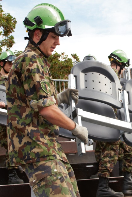 Ein anderes Beispiel: der Ski-Weltcup im Berner Oberland. Sowohl in Adelboden wie auch in Wengen kommen in den nächsten Wochen Armeeangehörige zum Einsatz. Im Auftrag der Organisatoren stellen sie Teile der Infrastruktur auf und präparieren an der Seite von lokalen Zivilschützern und freiwilligen Helfern die Pisten. «Ohne diese Arbeiten der Armee könnten viele Anlässe nicht stattfinden», betont der Operationsoffizier, Oberst im Generalstab Herbert Urban. Aus diesem Grund seien die Organisatoren dankbar für die Dienstleistung der Armee. Allein die Armee könne in diesem Ausmass Personal und Material einsetzen, auch bei schwierigen Bedingungen. Damit ergänzt ihr Engagement die Möglichkeiten des lokalen Gewerbes, wenn dieses die nötigen Kapazitäten oder Kenntnisse zur Erfüllung des Auftrags nicht hat.