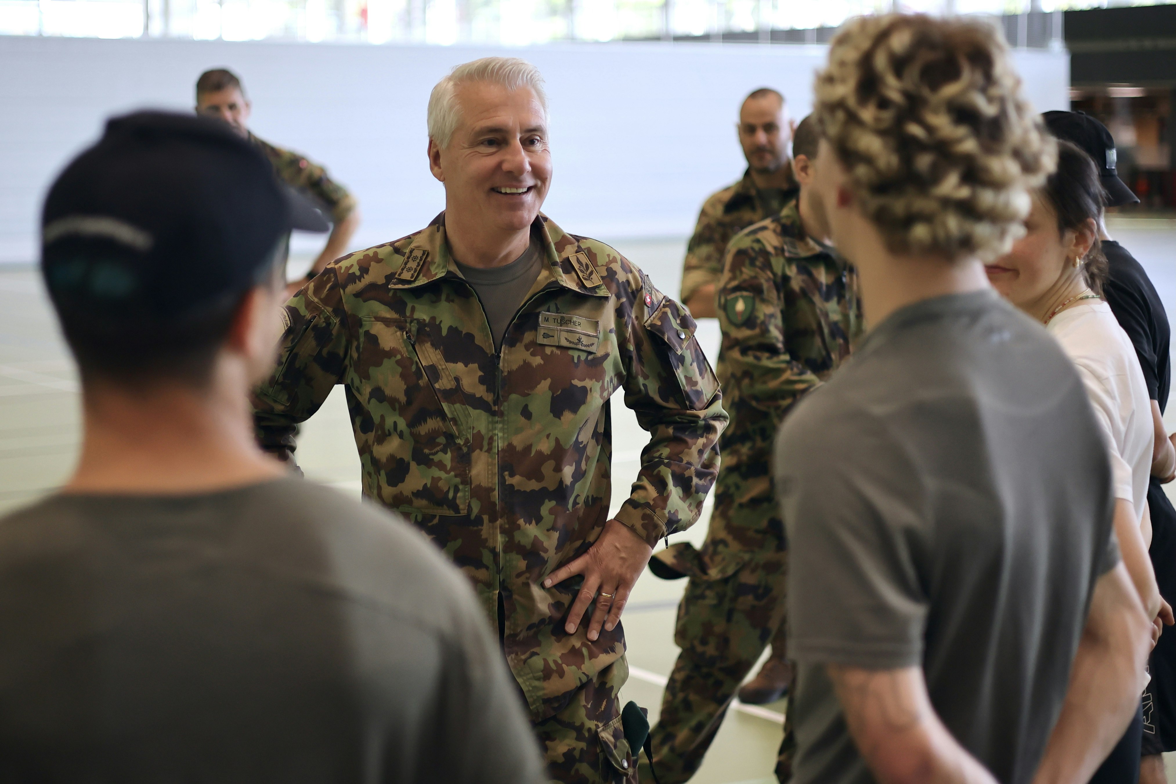 Hohen Besuch hatten am Mittwoch die Spitzensport-Rekruten und -Soldaten in der Halle End der Welt in Magglingen: Divisionär Mathias Tüscher (56), Kommandant der Territorial-Division 1, beehrte sie. Er machte sich ein Bild von der Trainingsarbeit und hatte mit ihnen sowie den Trainerinnen und Trainern einen regen Austausch.