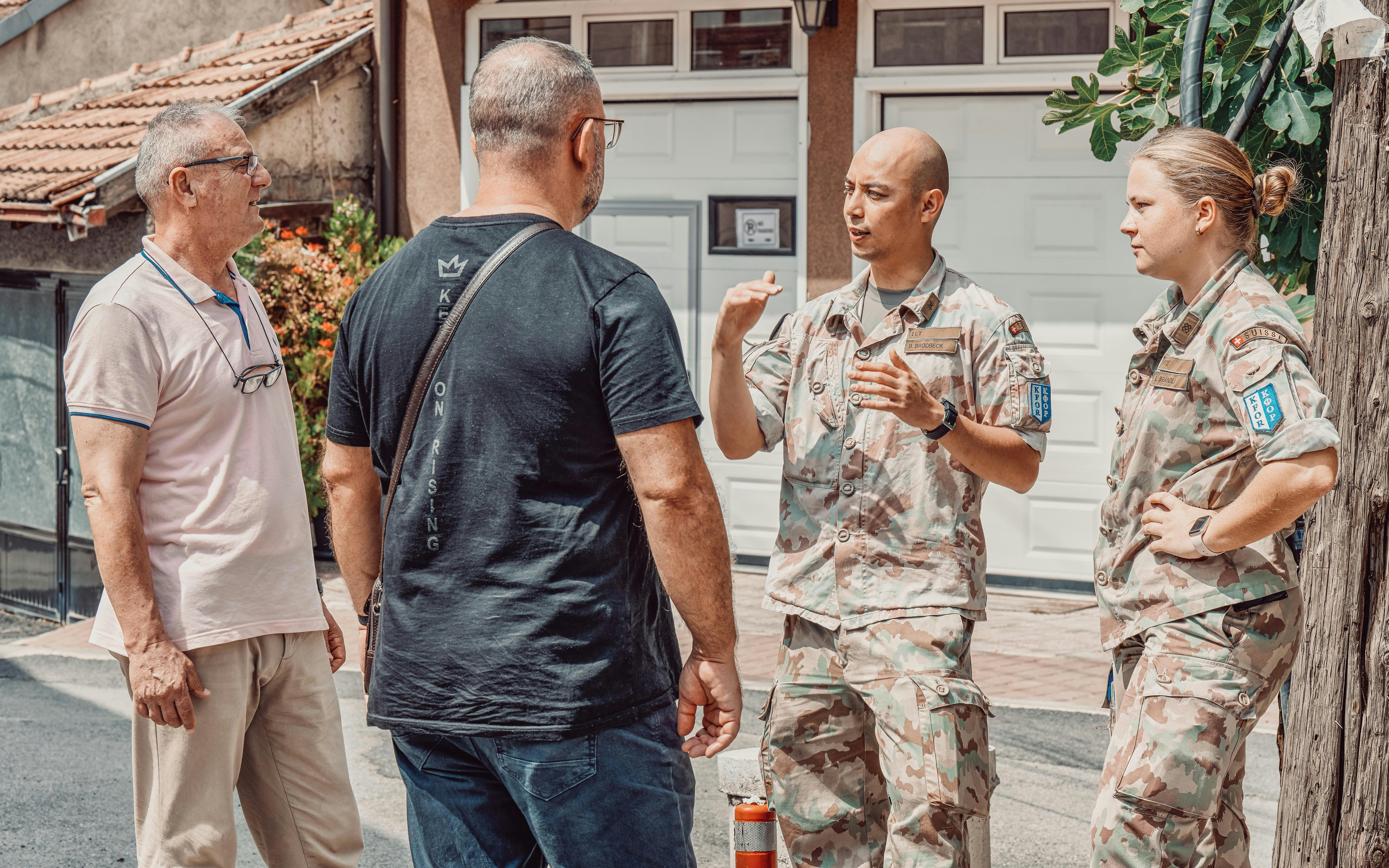 Einen aktiven Beitrag zur Gewährleistung eines sicheren und stabilen Umfelds leisten die Schweizer Angehörigen der Liaison and Monitoring Teams (LMT). Diese stellt die Schweiz an insgesamt sechs Standorten – sowohl im mehrheitlich kosovo-albanischen Teil im Süden des Landes als auch im Norden, der überwiegend durch Kosovo-Serben bevölkert ist. Damit stehen Angehörige der SWISSCOY in beiden ethnisch geprägten Regionen im Einsatz und sprechen als Teil einer unparteiischen und UNO-mandatierten Mission mit allen Volksvertreterinnen und -vertreter. Die Soldatinnen und Soldaten der LMT stehen zugunsten ihrer Auftragserfüllung mit einer Vielzahl von Organisationen (staatliche, regionale oder zivile) sowie mit Personen aller ethnischen Zugehörigkeiten in stetem Kontakt. Hierbei gilt es, das «im Kontakt stehen» von einer «engen Zusammenarbeit» richtigerweise abzugrenzen. Beispielsweise erhalten die LMT regelmässig Informationen von den lokalen Sicherheitsorganen im Einsatzraum. Dieser Kontakt findet allerdings in erster Linie statt, um zugunsten der KFOR Zugang zu sicherheitsrelevanten Informationen zu erhalten, die einen Einfluss auf die Stabilität der Region haben könnten. Der Mission dienen diese Informationen als Grundlage für die Beurteilung der Situation im ganzen Land und damit als Entscheidungsgrundlage, um die Ausrichtung der Einsatzmittel zu steuern. Die tägliche Arbeit der LMT trägt somit dazu bei, die Sicherheit und Stabilität für alle Bürgerinnen und Bürger – kosovo-serbische, kosovo-albanische oder von anderen ethnischen Gruppen – gewährleisten zu können. Daneben fungieren die LMT auch als Anlaufstelle für Organisationen und Personen, welche mit der KFOR in Kontakt treten möchten. Als neutrale Akteurin der internationalen Gemeinschaft stellt sich die KFOR nicht auf die Seite einer der Konfliktparteien und die SWISSCOY-Angehörigen treten entsprechend auf. Dabei helfen ihnen der gute Ruf der Schweiz, deren Neutralität auch in Kosovo weitläufig bekannt ist. Gut erkennbar an dem Schweizerkreuz auf ihren Schultern werden sie im ganzen Land gern gesehen und die Freundlichkeit sowie der Respekt ist von allen Seiten jederzeit vorhanden. Ideale Voraussetzungen für die Schweizer Armeeangehörigen, um einen Beitrag zur Stabilität und den Frieden in Kosovo zu erbringen.