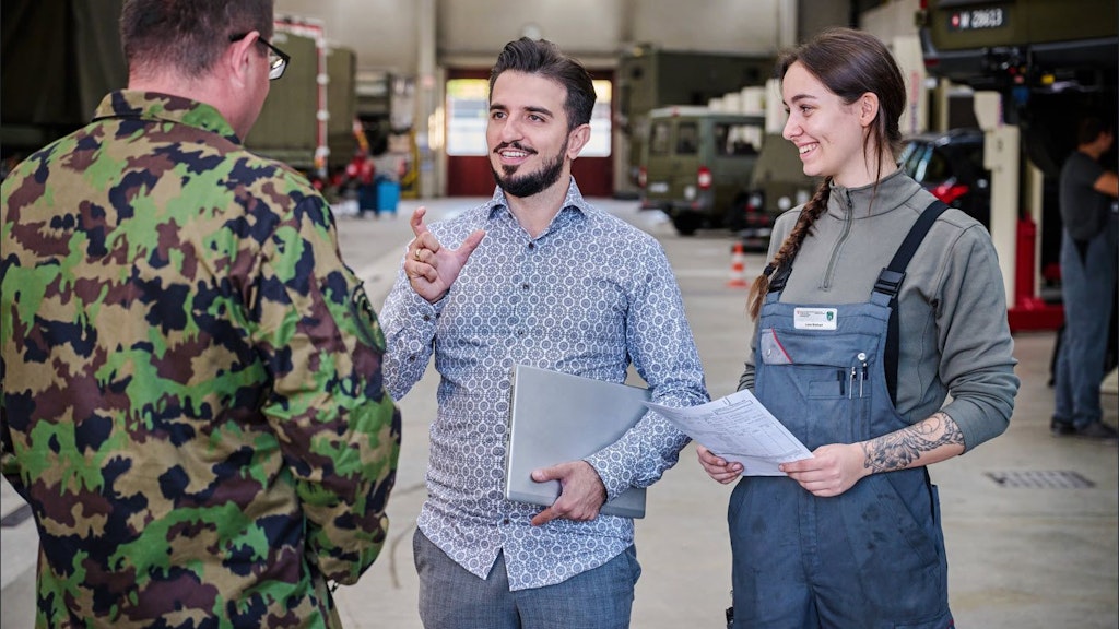 Auch wenn man bei der Schweizer Armee zuerst an Uniformierte denkt: Zwei Drittel unserer über 9'000 Mitarbeitenden sind in zivilen Jobs tätig und arbeiten ohne Uniform. Ein Teil davon sind circa 450 Lernende in mehr als 30 Berufen an 50 Standorten in der ganzen Schweiz.