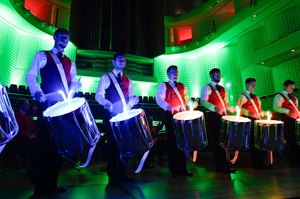 Rassige Märsche und sanfte Melodien lassen das Zuhörerherz höherschlagen. Als Kontrast dazu zündet das Drum Corps in zwei Showblocks spektakuläre Trommelfeuerwerke. Die Tambouren überraschen dabei nicht nur mit animierenden Rhythmen, sondern auch mit visuellen Effekten.