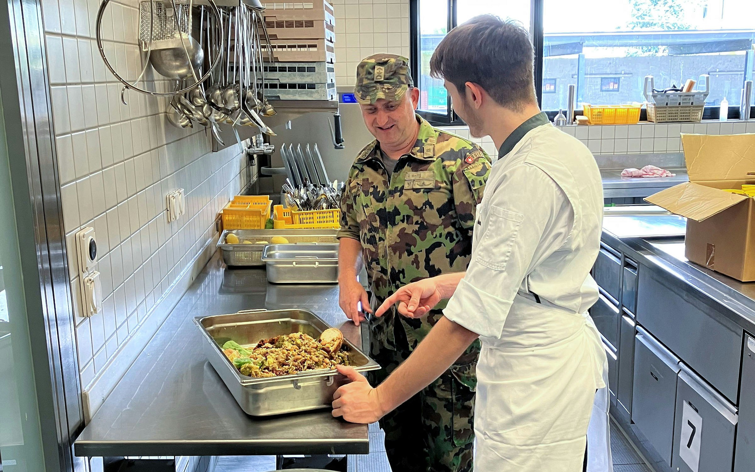 Im Fokus der Verpflegung ist Lebensmittelverschwendung eine alltägliche Realität. Einen Beitrag zu dessen Reduktion zu leisten bedeutet gleichzeitig, die Umsetzung der Ziele des Aktionsplans Energie und Klima des VBS täglich ein wenig voranzutreiben. Hauptadjutant Daniel Marti, Chef Fachausbildung Leiter Verpflegung, engagiert sich dafür. «Wir sind bereits auf gutem Weg», beschreibt er die aktuelle Situation in den Truppenküchen, wo auf eine regionale Beschaffung und eine der vorgesehenen Truppenstärke angepasste Mahlzeitenplanung Wert gelegt wird. Daniel Marti legt den Fokus auf Ressourcen-Management sowie Information und Ausbildung der Truppe.
