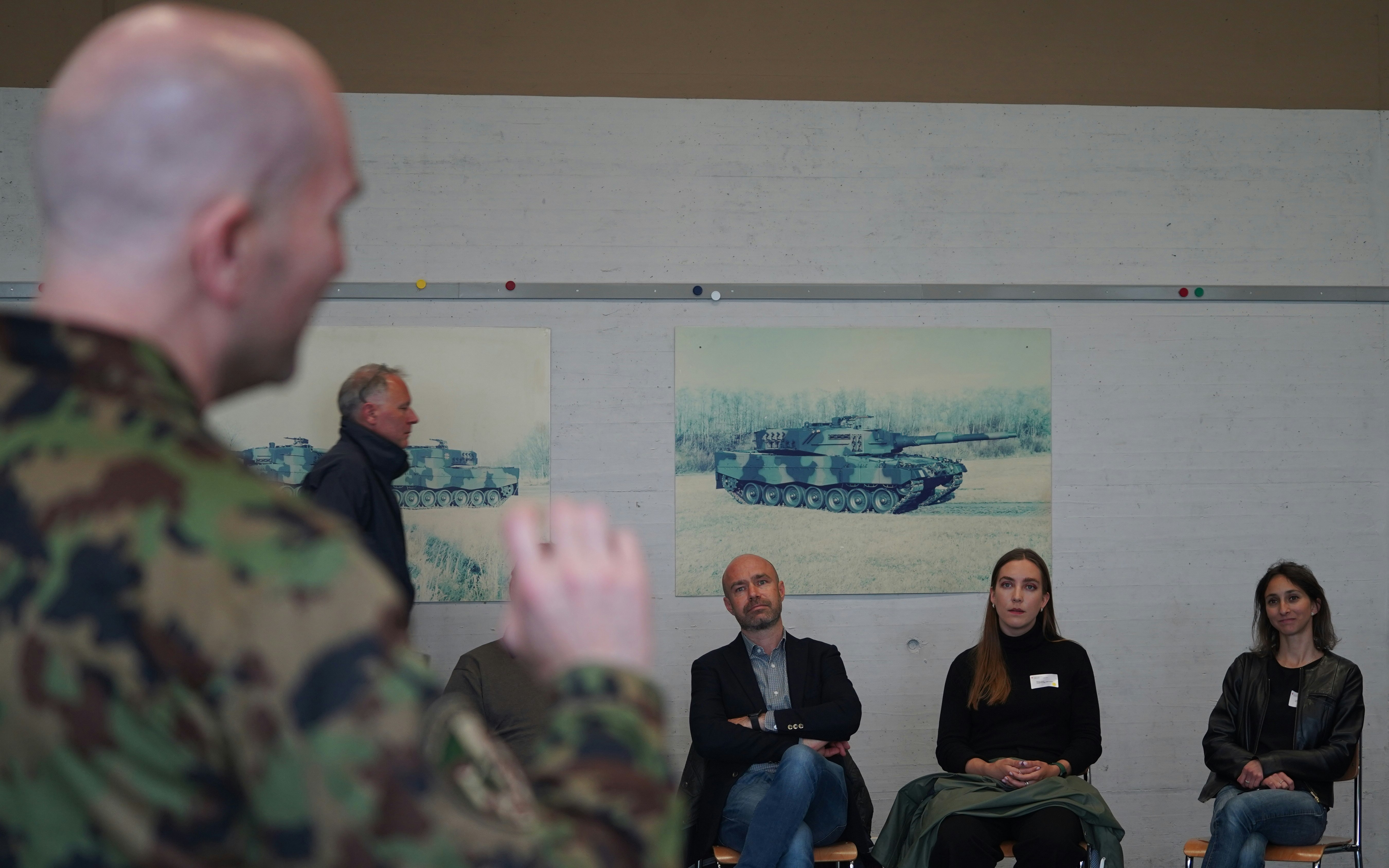 Der Chef der Armee, Korpskommandant Thomas Süssli, hat zu diesem Anlass eingeladen, weil ihm die Leadership-Ausbildung der Armee am Herzen liegt und er vom Transfer der Kompetenzen ins Zivilleben überzeugt ist. So erläuterte er an einer der Stationen den Besuchergruppen die Führungsabläufe der Armee und deren Anwendung in unterschiedlichen Phasen. Die Diskussionen gingen auch darüber hinaus, denn die Teilnehmenden interessierten sich sehr für die Aufgaben und Herausforderungen der Armee.