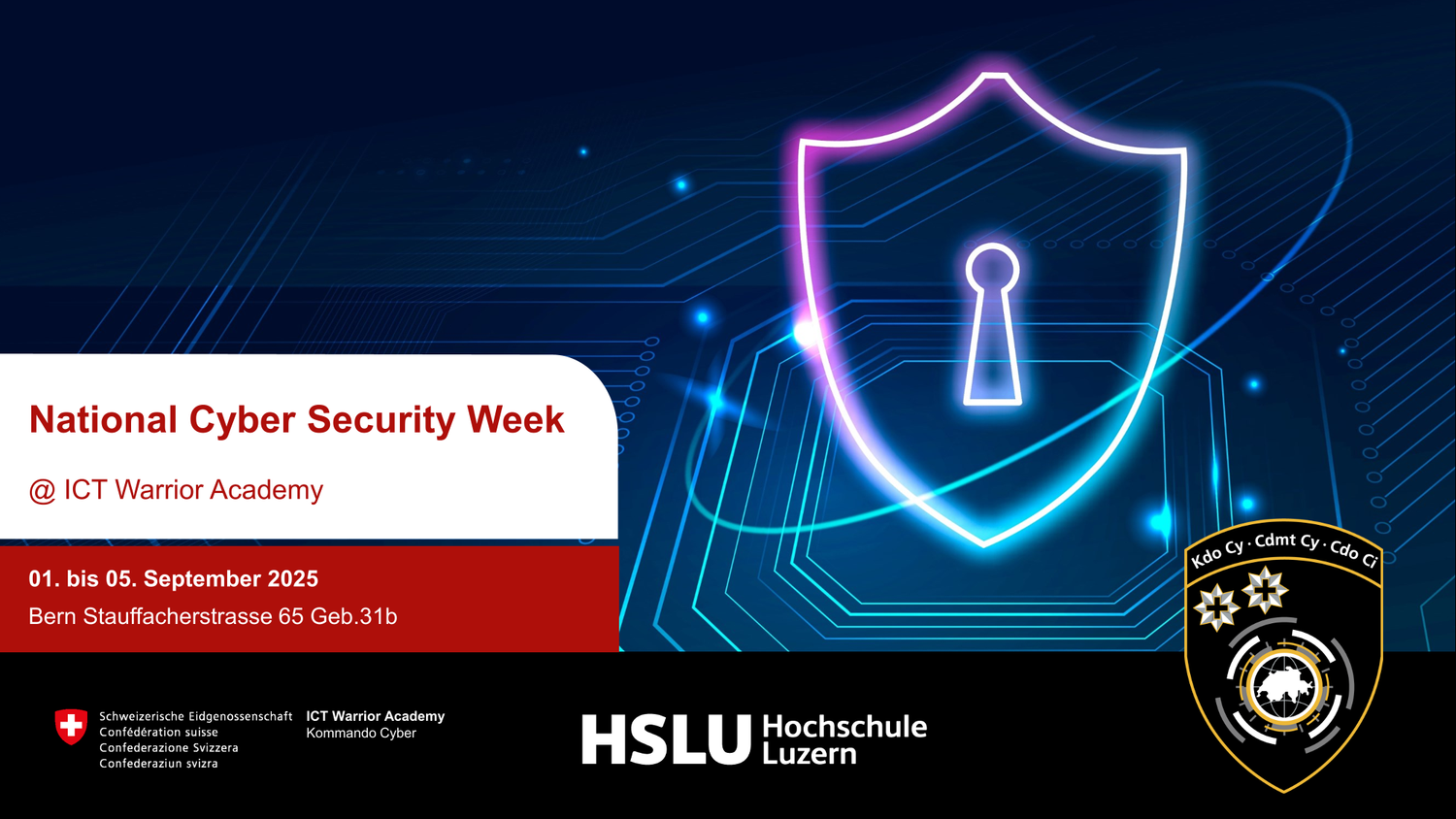 Die National Cyber Security Week der Hochschule Luzern HSLU wird in Zusammenarbeit mit der ICT Warrior Academy des Kommandos Cyber durchgeführt. Während einer Woche stehen zahlreiche exklusive Vorträge zum Thema Cyber Security, insbesondere für die Schweizer Armee, im Vordergrund.