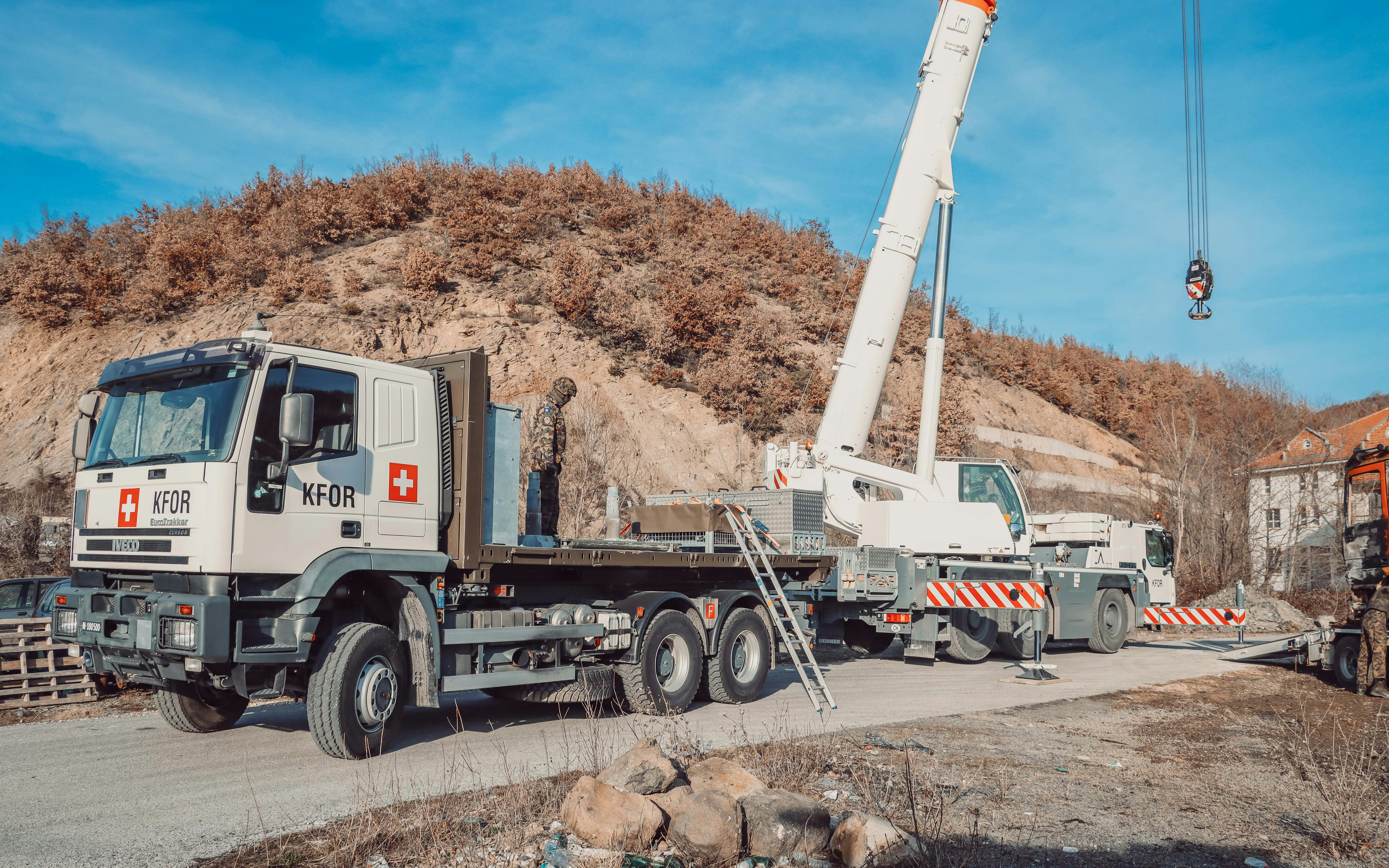 Das zweite grosse Aufgabengebiet des SO ENG stellt die Sicherstellung der Bewegungsfreiheit im Einsatzraum dar, Englisch «Freedom of Movement» (FOM) genannt. FOM ist einer der zwei Kernaufträge der KFOR, weshalb diesem Aufgabengebiet ein höherer Stellenwert als den Bauprojekten zukommt. FOM bedeutet nämlich konkret, die Bewegungsfreiheit für die KFOR selbst sowie alle Menschen und Gemeinschaften in Kosovo zu gewährleisten. FOM kann sowohl durch Naturgefahren, wie Erdrutsche oder Überschwemmungen, als auch gewollt, zum Beispiel durch Strassenblockaden beeinträchtigt werden. Die KFOR trainiert regelmässig FOM-Einsätze, damit wir im Ereignisfall bereit sind, die Bewegungsfreiheit effizient wiederherzustellen.