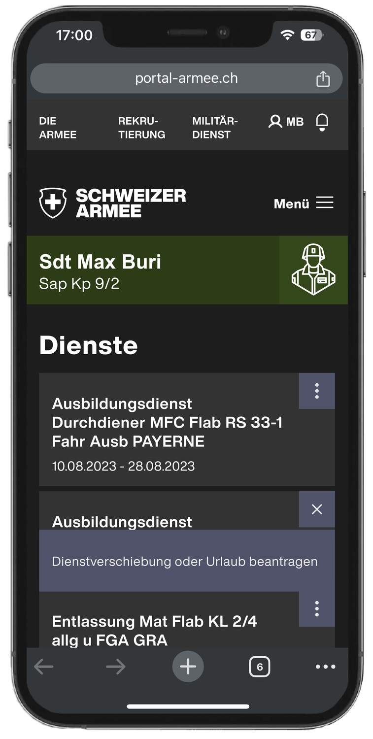 Über den Dienstmanager verwalten Sie Ihren Militärdienst einfach online, jederzeit und von überall. Dienstmanager