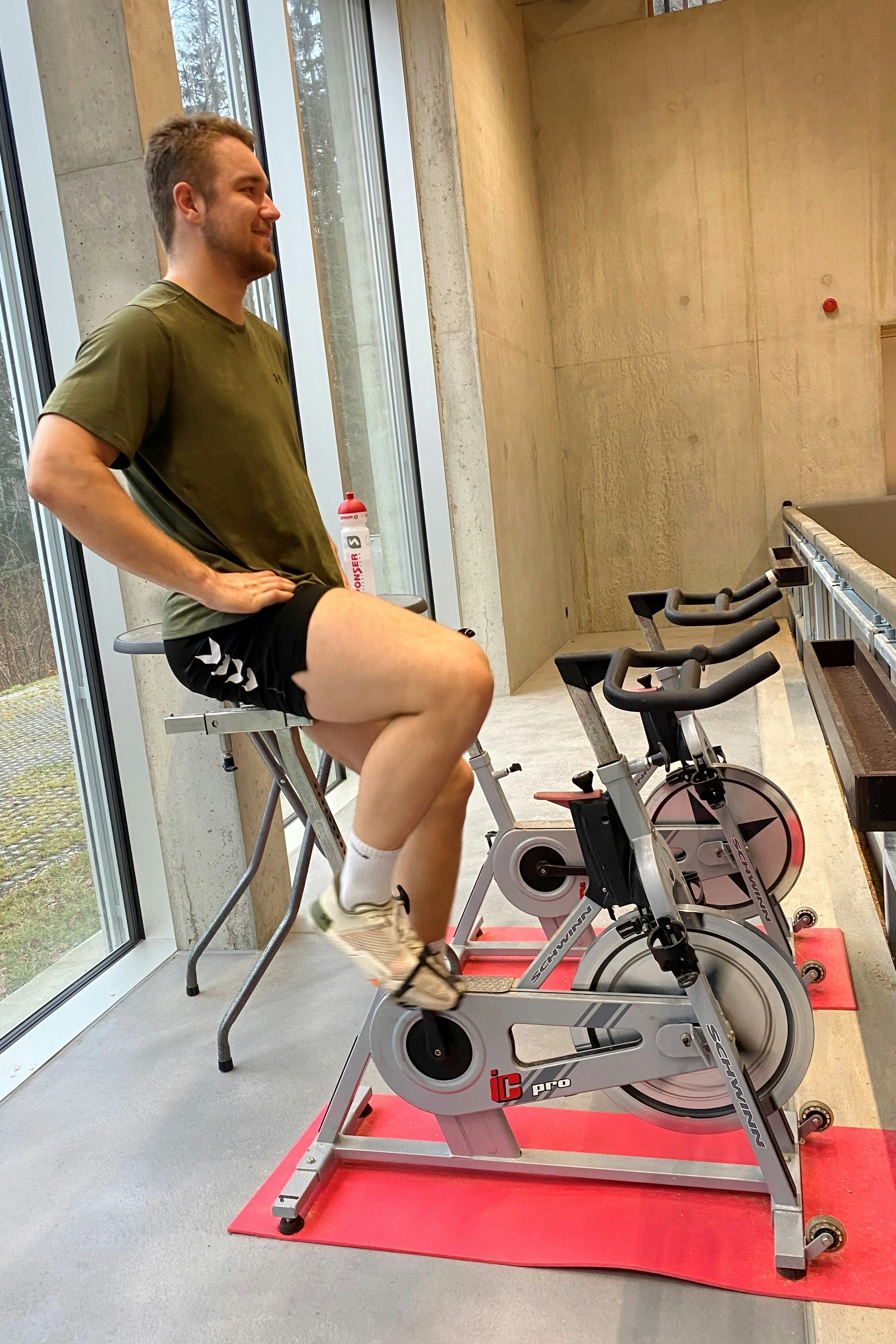 Wegen einer leichten Blessur am Oberkörper stieg er an diesem Tag nicht wie seine Kameraden in die Zwilchhosen, sondern trainierte auf dem Indoor-Velo. «Es ist besser etwas zu schonen, als die Verletzung über Wochen mitzuschleppen», sagte dazu Walther, der neben dem Schwingen einer 60%-Anstellung in einem Architektur-Büro nachgeht. Was sind für den 22-jährigen Zweimeter-Hünen aus Habstetten bei Bolligen die Hauptvorteile dieser Spitzensport-WKs? «Ich kann hier mit starken Gegnern mit hoher Intensität schwingen, Krafttrainings absolvieren und habe ausserdem genügend Zeit zur Regeneration», so der Eidgenosse und Brünig-Sieger von 2022. «Zuhause könnte ich auch zweimal pro Tag in den Krafttraum, aber da würde eben neben der Arbeit die Erholung fehlen», nennt er den Unterschied.