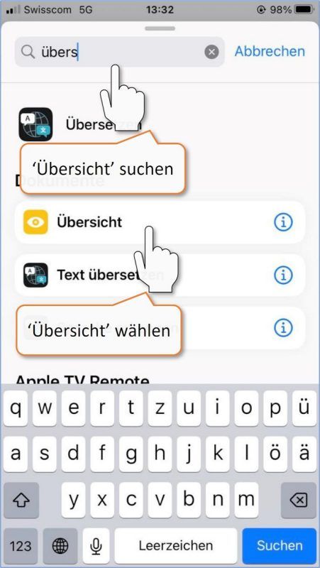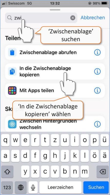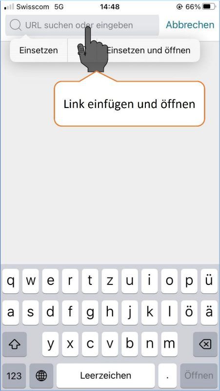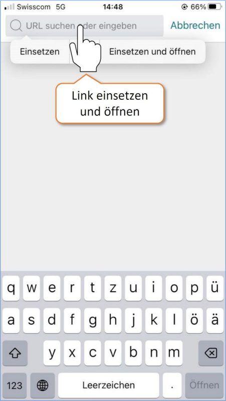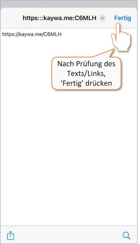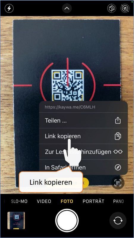 * Das Kopieren der URL funktioniert nur, wenn Safari als Standardbrowser definiert ist. Bei anderen Standardbrowsern empfehlen wir den Einsatz von iOS-Kurzbefehlen zum Scannen und Prüfen der URL.