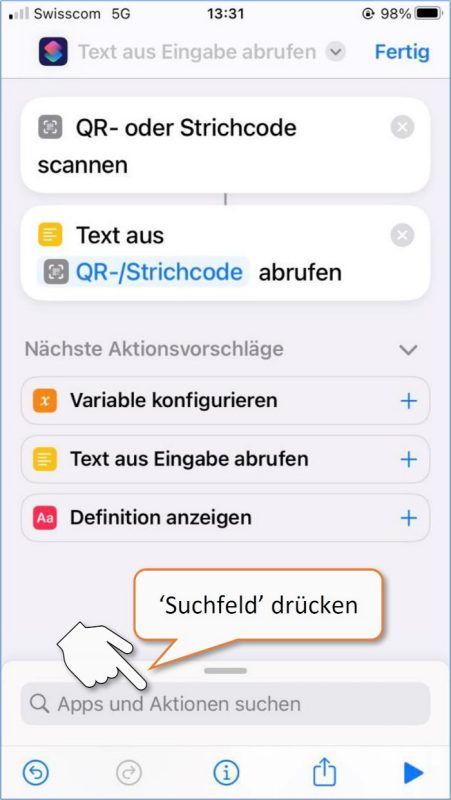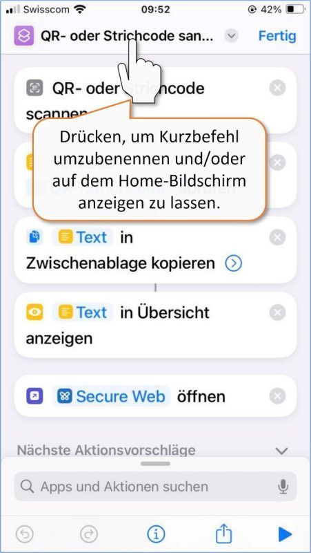 Ein Kurzbefehl ist eine gute Möglichkeit, um eine oder mehrere Aufgaben mit Apps schnell zu erledigen. Mit der folgenden Anleitung wird eine Anwendung auf dem iPhone «programmiert», welche das sichere Scannen von QR-Codes erleichtert.