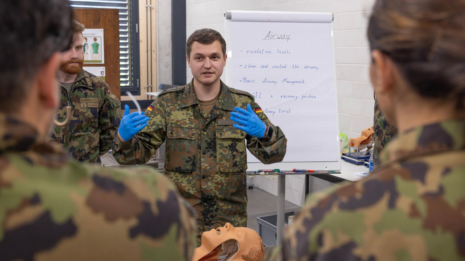 Die Zusammenarbeit mit internationalen Partnern ist ein zentraler Bestandteil der modernen Armeeausbildung. Zum Beispiel im Bereich Tactical Combat Casualty Care (TCCC), bei dem auch Instruktorinnen und Instruktoren anderer Nationen ausgebildet werden. Diese Kooperation ermöglicht es, die neuesten internationalen Standards und bewährte Praktiken aus verschiedenen militärischen und zivilen Kontexten in die Ausbildung einfliessen zu lassen. Gleichzeitig fördert sie den Austausch von Wissen und die Stärkung der Kooperation zwischen den beteiligten Ländern.