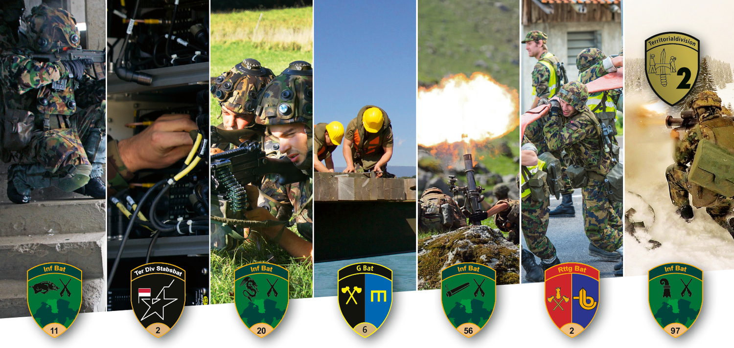 Der militärische Verantwortungsbereich der Territorialdivision 2 (Ter Div 2) umfasst die Kantone Basel-Stadt, Basel-Landschaft, Solothurn, Aargau, Luzern, Ob- und Nidwalden und ist für diese Kantone Partner in militärischen Belangen.