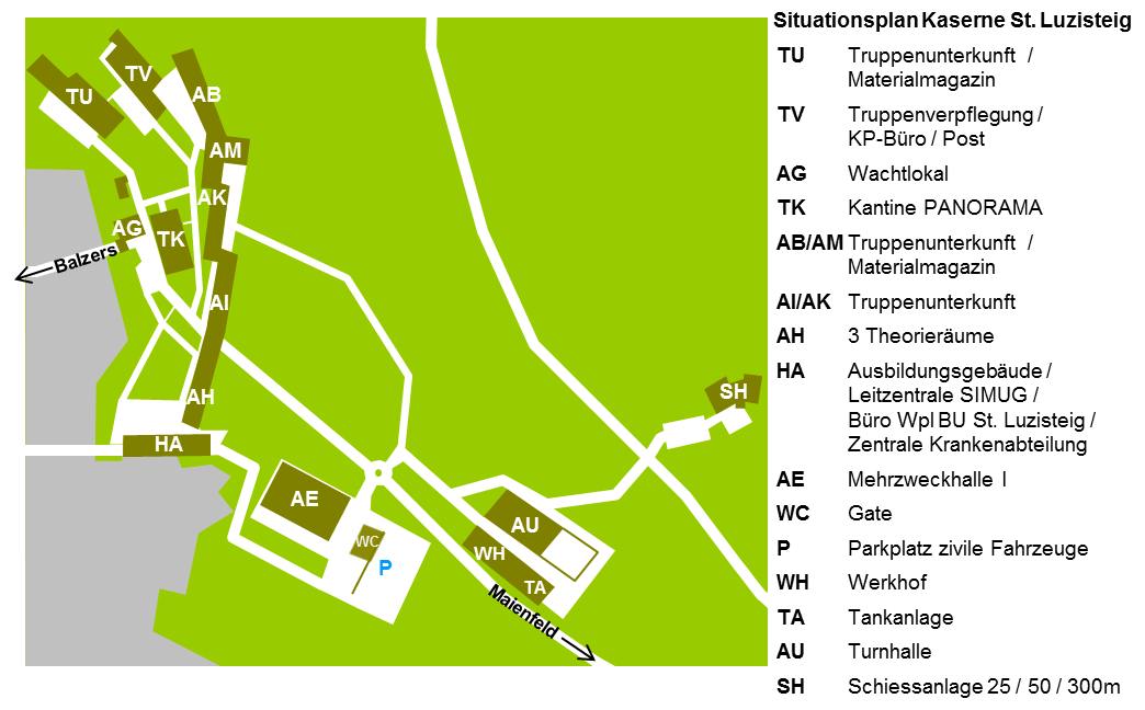 Als Teil des Ausbildungszentrums der Armee bildet das Kommando Waffenplätze Walenstadt mit dem Schiessplatz St. Luzisteig das Bindeglied zu den zivilen und militärischen Instanzen vor Ort.