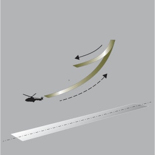 This very tight turn, flown horizontally at maximum speed, is a defence manoeuvre in tactical flying. The goal is to fly a full circle as tightly as possible, while always being aware of the enormous aerodynamic force that is being applied to the rotor.