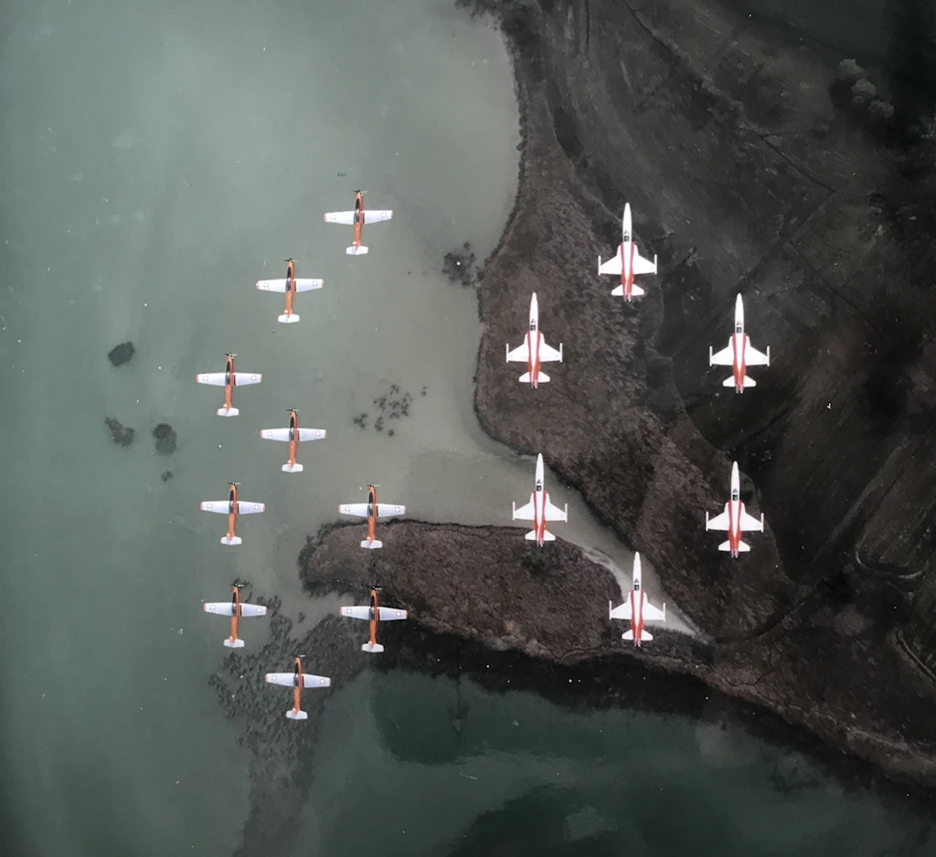The PC-7 TEAM is made up exclusively of F/A-18 career military pilot who perform displays as a second job; this is rare in the military aerobatics community worldwide and proves the high performance capacity of the Swiss Air Force.