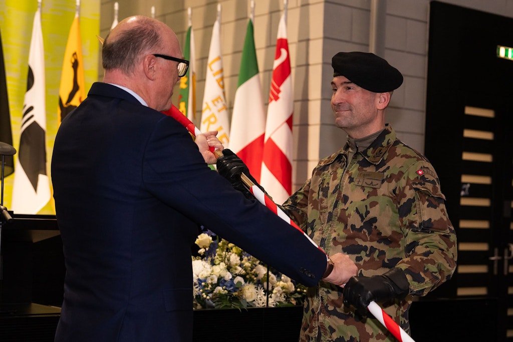 Le 27 novembre 2025 à Lucerne a lieu la passation du commandement de l’armée entre le commandant de corps Thomas Süssli, chef actuel, et le divisionnaire Bänz Roos, chef désigné. Près de 120 invités issus des milieux politique, économique et militaire assistent à la remise de l’étendard dans la salle du Conseil cantonal de Lucerne, située dans le bâtiment du gouvernement.