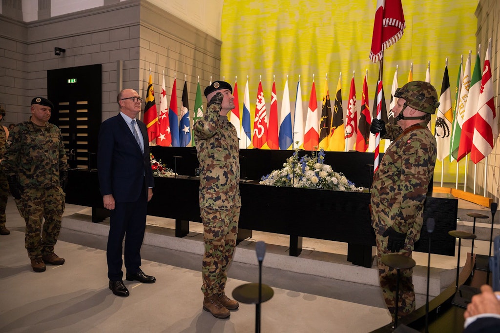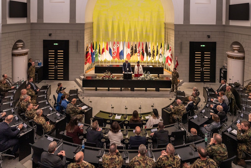 Ce jeudi 27 novembre 2025 à Lucerne, lors d’une cérémonie officielle, le commandant de corps Thomas Süssli, chef de l’Armée, remet le commandement de l’Armée suisse à son successeur désigné, le divisionnaire Bänz Roos. La remise de l’étendard dans la salle du Conseil cantonal de Lucerne, située dans le bâtiment du gouvernement, symbolise le changement à la tête de l’armée.