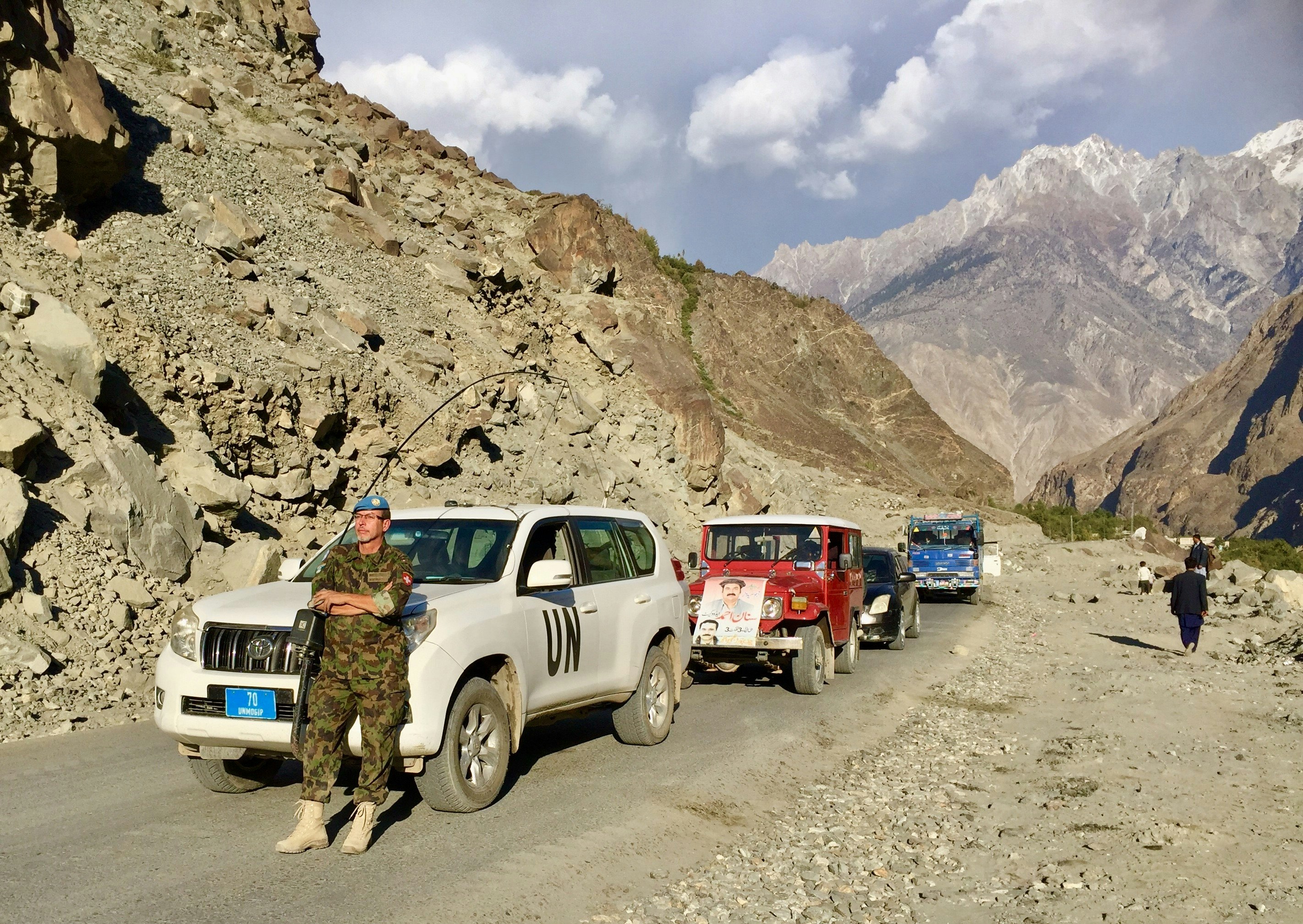La pièce dans laquelle je me trouve est sombre et l’air y est étouffant. Une faible lumière traverse une fenêtre protégée de façon improvisée par des sacs de sable et des lattes de bois. La lumière passe également par les trous de différentes tailles qui entourent la fenêtre et proviennent de l’impact d’un mortier. Ma tâche en tant qu’observateur militaire impartial et neutre de l’ONU à cet endroit est de recueillir les déclarations des témoins en colère – c’està-dire des habitants de cette cabane isolée, que l’on ne peut atteindre qu’à pied à travers les montagnes et qui est située à plus de 3000 mètres d’altitude. La cabane a été prise entre les feux croisés des deux parties le long de la ligne de démarcation, dite ligne de contrôle, qui sépare les parties administratives indienne et pakistanaise du Cachemire. Les informations que je reçois des habitants sont pertinentes pour la sécurité et sont intégrées dans l’évaluation de la situation par la mission des Nations Unies sur le terrain. Elles indiquent une possible violation de l’accord de cessez-le-feu.