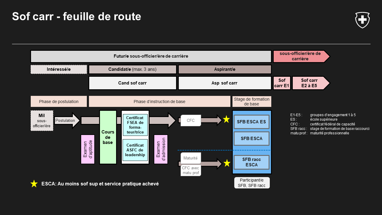 Stage de formation de base (SFB) de deux ans menant à un diplôme fédéral de sous-officier/sous-officière de carrière ES.