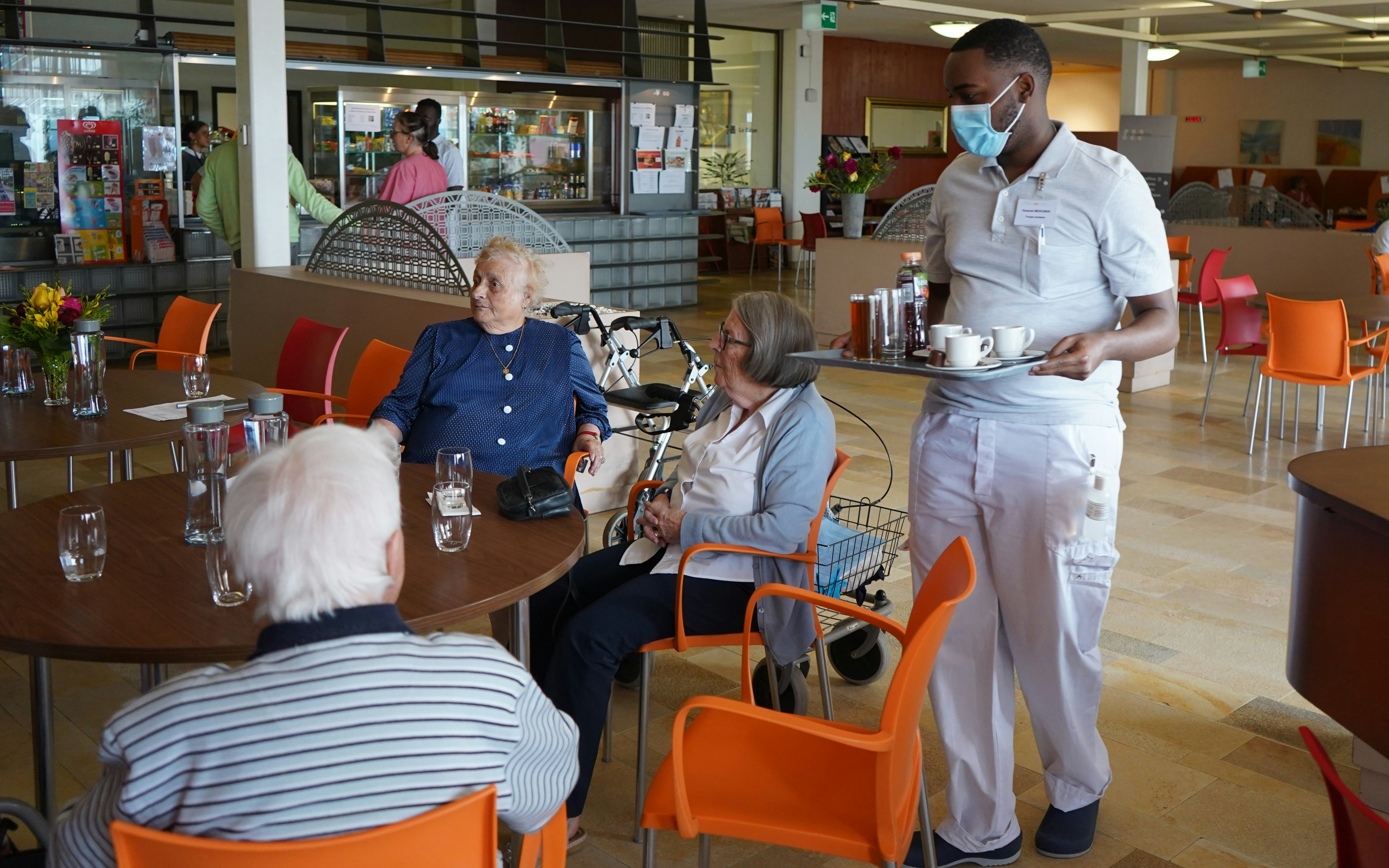 Ce matin-là, dans la cafétéria pratiquement déserte, le soldat sanitaire Kesanet Mokonen fait la conversation à un groupe de résidents. Tout comme ses sept autres camarades engagés aux Charmettes, son travail consiste principalement à accompagner les personnes âgées durant la journée, entre 10 heures et 19 heures. En effet, le coronavirus a provoqué des besoins accrus dans le domaine des soins et de l'accompagnement, mettant l'ensemble de l'établissement sous pression. Toute aide est donc la bienvenue, qu'il s'agisse de servir les résidents lors des repas, de faire une balade avec eux dans le parc, de les aider lors de leur toilette ou tout simplement d'être à leur écoute. «On est content de voir qu'on peut aider. On soulage non seulement le personnel soignant mais on apporte aussi de la joie aux résidents qui n'ont plus de visite depuis le début de la crise», explique le soldat Mokonen.