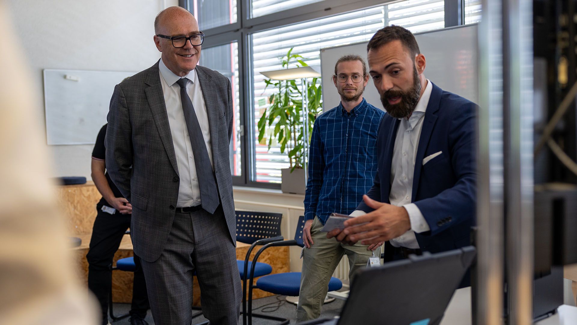 Le conseiller fédéral Martin Pfister a rendu visite aux collaborateurs du Commandement cyber (Cdmt Cy) à la mi-juin. Le chef du Commandement cyber, le divisionnaire Simon Müller, a présenté l'organisation, ses tâches principales et les défis actuels. Lors d'une visite guidée du centre de suivi de la situation du Cdmt Cy, le conseiller fédéral Pfister a pu se faire une idée des activités et échanger avec les collaborateurs et collaboratrices. La visite s'est terminée par une rencontre avec les équipes de la division Engagement TIC, qui ont notamment présenté au conseiller fédéral Pfister la méthode de travail agile sur laquelle repose la nouvelle plateforme de numérisation.