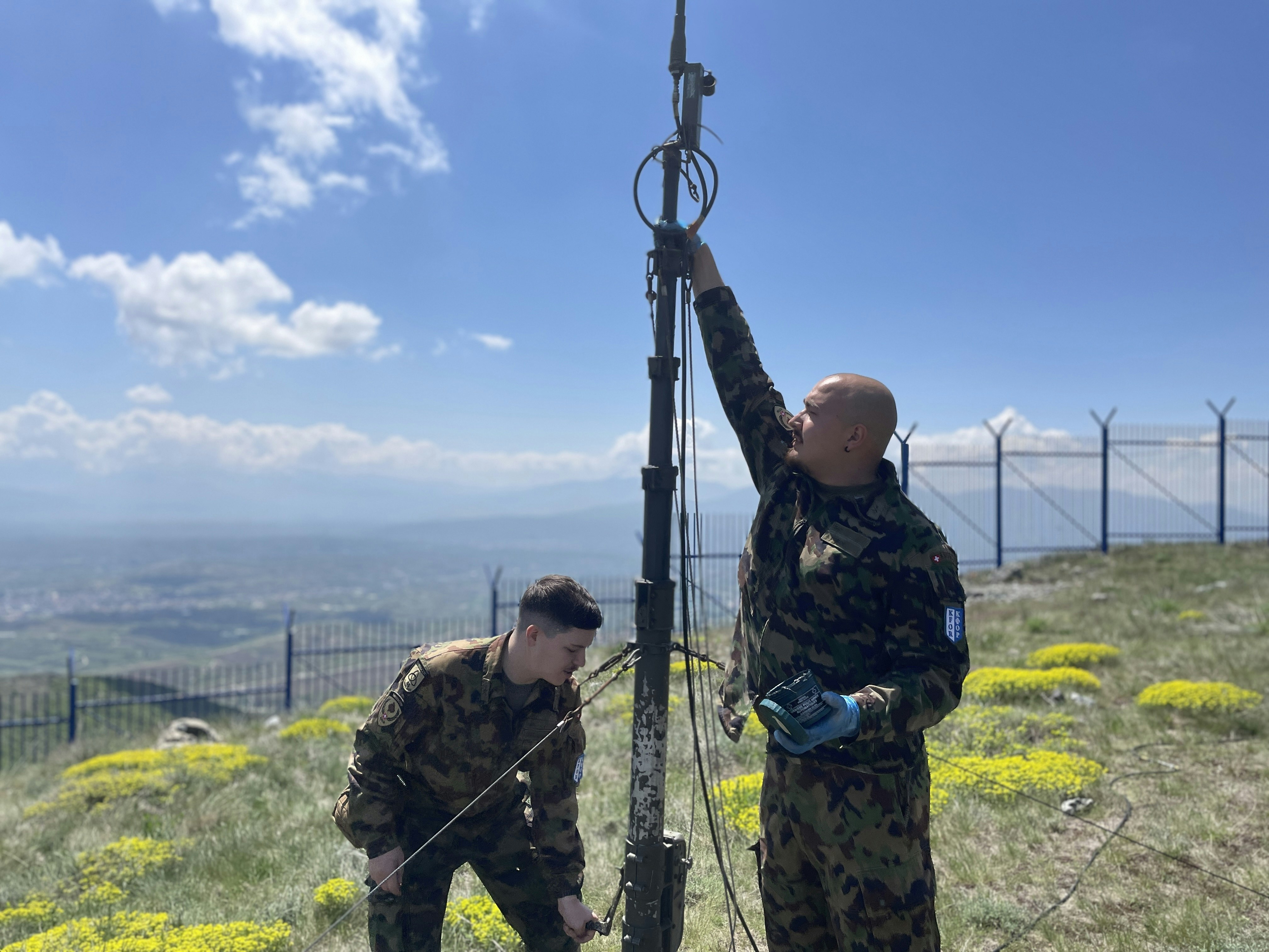 Lors du passage de témoin à l’arrivée d’un nouveau contingent, les spécialistes du MOVCON approfondissent leurs connaissances directement dans les stations relais du pays. Les contrôles d’entretien, qui consistent à graisser les antennes radio, à inspecter les câbles à la recherche d’éventuelles dommages et à vérifier les connecteurs à l’aide d’un spray de contact, constituent une rupture bienvenue dans la routine des opérateurs. « Quand j’assumais la fonction de spécialiste de l’aide au commandement dans le contingent précédent, j’aimais beaucoup ces inspections, parce que c’était l’occasion de sortir du camp », résume le chef d’équipe et S6.