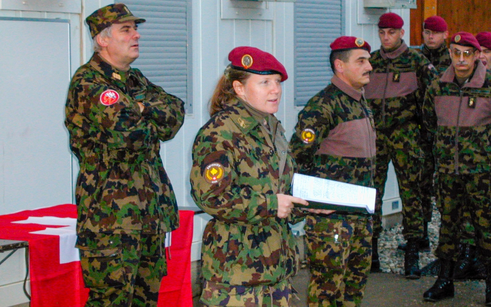 Mon intérêt pour une mission de promotion de la paix avait déjà été déclenché précédemment – par un article dans notre quotidien local. Ce dernier avait publié le portrait d’un observateur militaire. Ma réaction avait été claire : « Je pourrais moi aussi offrir ma contribution !» Dans le cadre de mon activité professionnelle au service du DDPS, je me suis mise à disposition pour une mission SWISSCOY et en septembre 2000, j’ai rallié mon poste de membre du troisième contingent au Kosovo. J’ai même prolongé mon engagement pour des raisons structurelles en matière de personnel, ce qui a fait que j’ai encore servi quelques semaines avec le quatrième contingent.