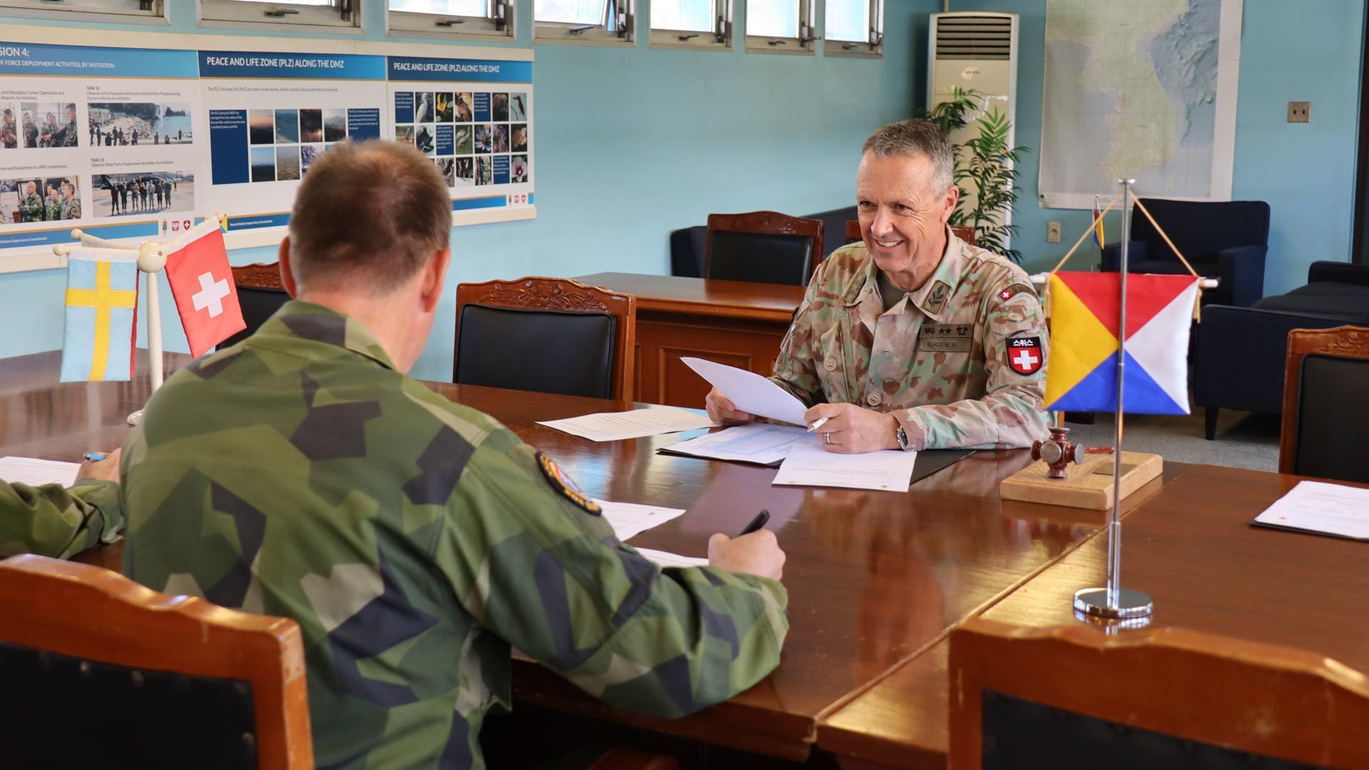 La Commission de supervision des nations neutres en Corée (CSNN) est la plus ancienne mission de promotion de la paix de l’Armée suisse. En effet, elle remonte à 1953 et à la décision du Conseil fédéral d’envoyer environ 150 militaires en Corée. Aujourd’hui, cinq officiers suisses et cinq officiers suédois sont encore stationnés à Panmunjom, au sud de la ligne de démarcation. Leur tâche principale consiste toujours à veiller au respect de l’armistice signé en 1953. Il s’agit notamment d’inspecter les postes d’observation, les postes de garde et les positions d’armes, d’observer les exercices militaires dans la partie sud ou d’enquêter sur les violations présumées de l’armistice.