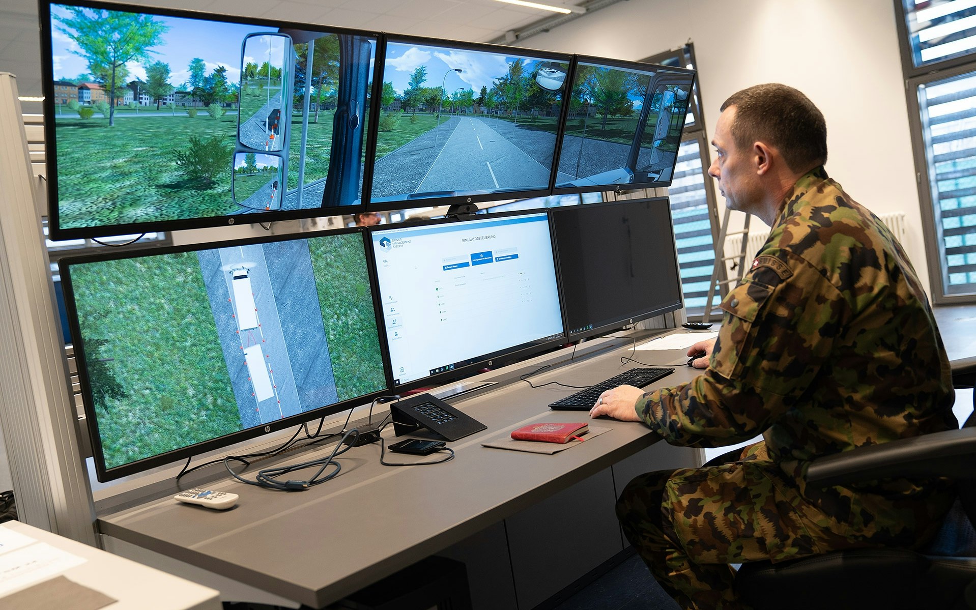 Avec le FSM 24, l’armée fait un pas de plus vers la digitalisation. Le simulateur permet de s’entraîner dans le calme à des manœuvres complexes, voire dangereuses. Sans oublier que chaque trajet effectué sur simulateur et non sur route réduit l’usure des véhicules et les émissions de CO2. Il existe toute une variété de places de manœuvre virtuelles offrant des conditions proches de la réalité et le moniteur peut coacher jusqu’à cinq élèves en même temps. L’un des grands avantages du FSM 24 est sa mobilité. Il est facile à transporter et peut être utilisé en tout lieu. Comme le rappelle l’adjudant d’état-major Daniel Hilfiker : « C’est un produit commercial prêt à l’emploi, utilisable partout. » Il aide les élèves conducteurs à atteindre leur objectif, avec le soutien de leur moniteur : savoir manœuvrer les véhicules de l’armée avec habileté, en toute sécurité et en fonction du trafic.