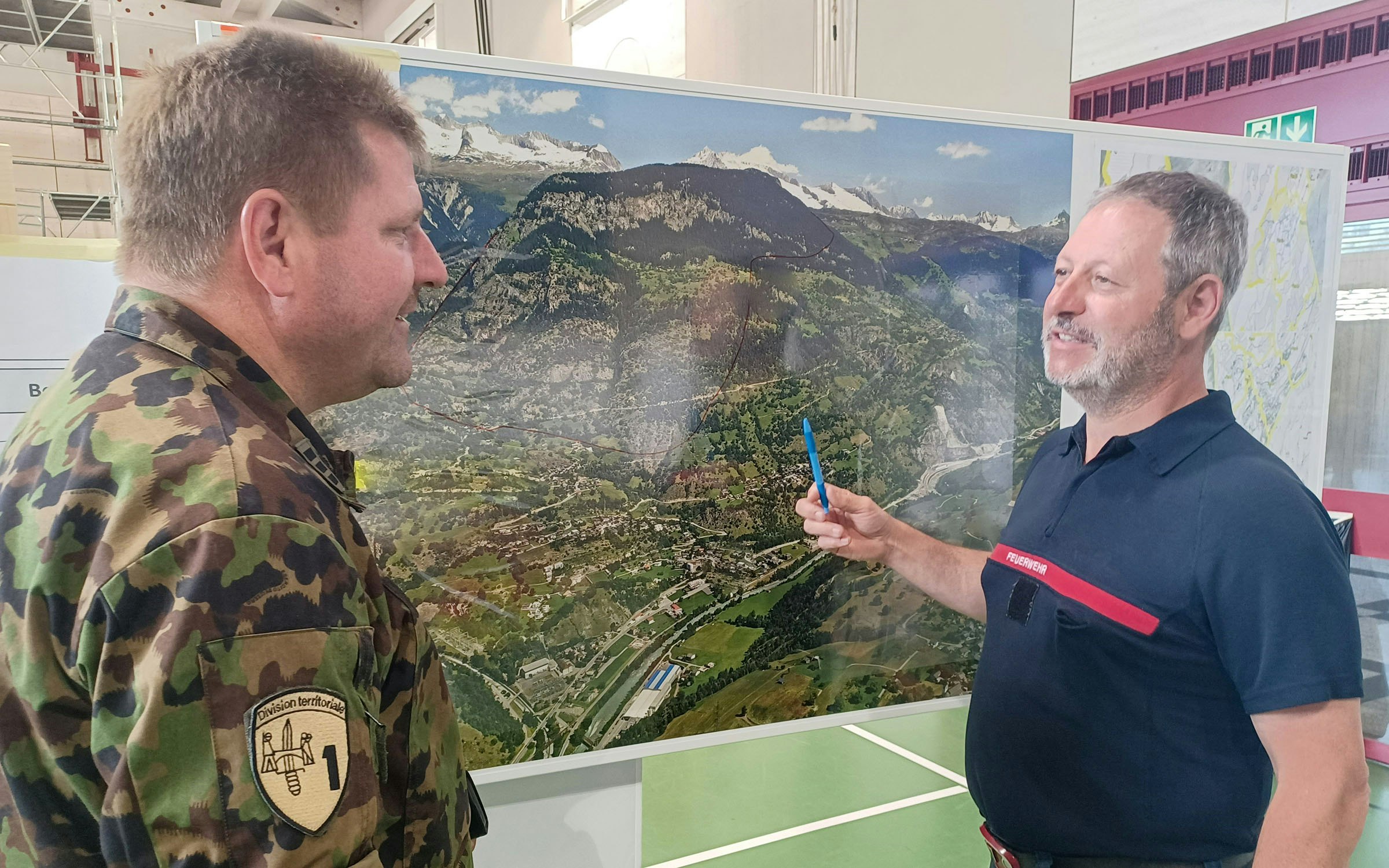 Entre-temps, les forces aériennes ont effectué un vol avec le système « FLIR », qui permet de détecter les sources de chaleur. Ces données sont également transmises à la direction d'intervention. Elles ont déjà pu être évaluées. « Les images aériennes et les informations fournies par les caméras thermiques au sol sont très importantes pour nous », souligne Mario Schaller, chef des opérations et commandant des sapeurs-pompiers de la commune de Brigue-Glis. « L'engagement de l'armée nous permet d'obtenir une image pertinente des innombrables foyers d'incendie invisibles à l'œil nu. Nous pouvons ainsi planifier les prochaines interventions de manière efficace. »