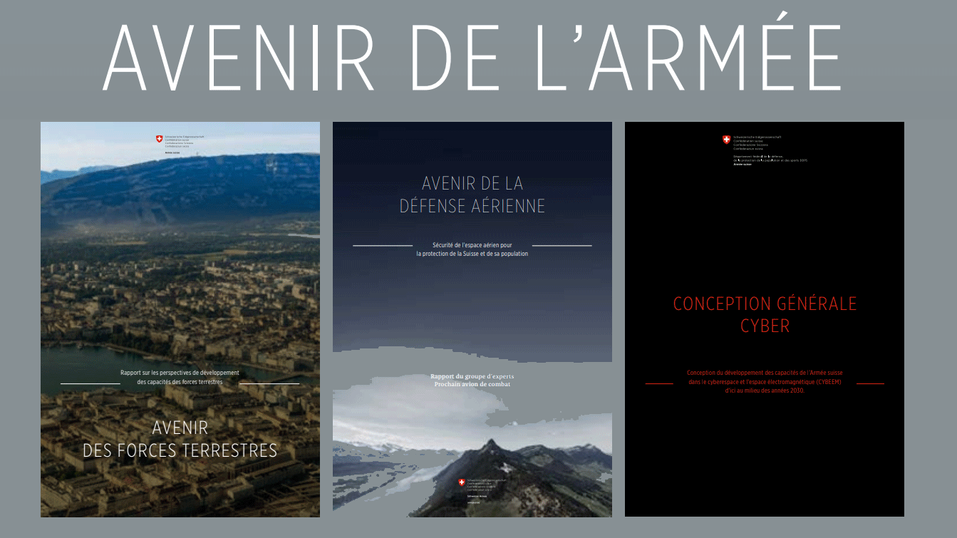 Les rapports fondamentaux du DDPS «Avenir de la défense aérienne», «Avenir des forces terrestres» et «Conception générale cyber» le montrent: l’armée est orientée sur la menace et ses capacités sont développées en conséquence.