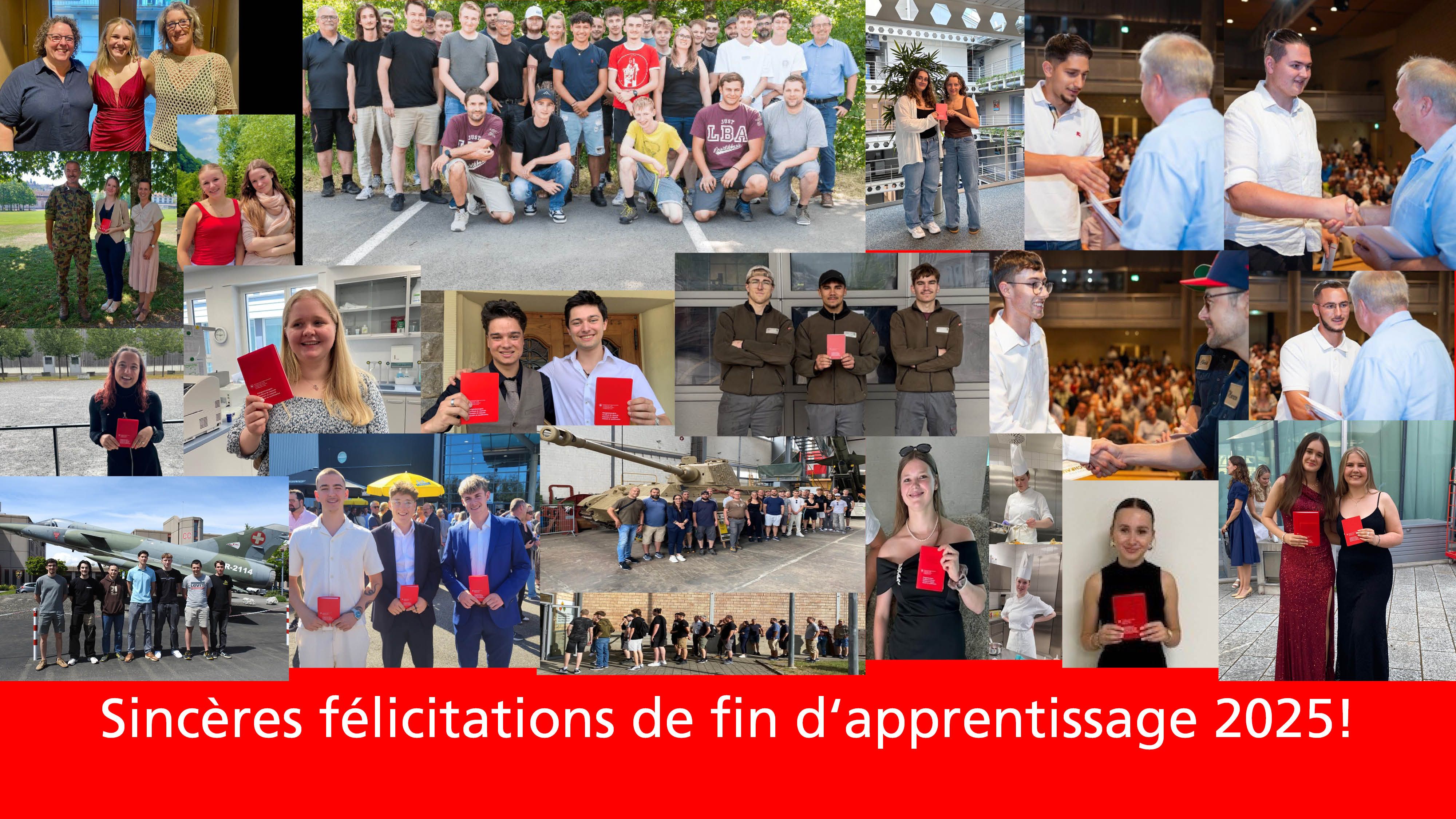 Nous félicitons très sincèrement l'ensemble de nos 108 apprentis et apprenties pour leur réussite de fin d'apprentissage 2025 et les remercions pour le travail, ainsi que l'engagement fourni durant leur période de formation.