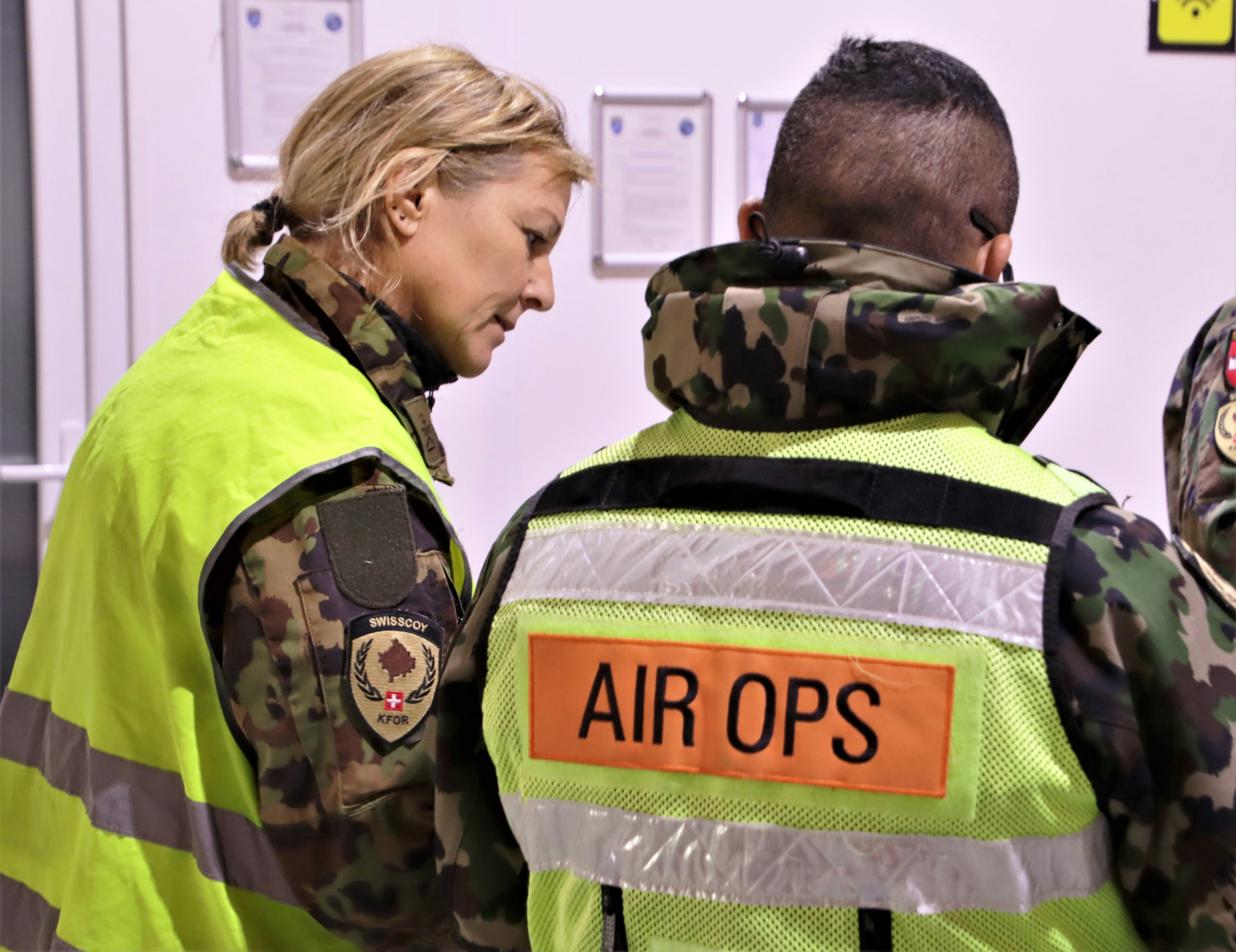 Sur la base aérienne de Slatina, près de Pristina, l’opérateur aérien est le coordinateur de SWISSINT, qui se trouve à Stans-Oberdorf où sont planifiés les vols. Au camp, il est l’administrateur qui organise les vols d’approvisionnement. Dans les deux cas, il est au service du contingent. Sasha Bonavia est le type d’homme calme, ouvert, qui apprécie la compagnie. Maintenant que le changement de commandement a été effectué et que sa collègue est repartie, l’opérateur aérien est désormais livré à lui-même. « Grâce à cette introduction de qualité, je me sens prêt pour l’engagement. Mais je suis bien conscient que, dans les semaines à venir, certaines choses risquent encore de m’échapper. Ce qui est important, c’est que je structure mon travail pour ne rien oublier. Ce sera mon grand défi au cours des premières semaines. L’objectif principal est que mes camarades de contingent puissent embarquer ponctuellement dans l’avion, et décoller à l’heure. »