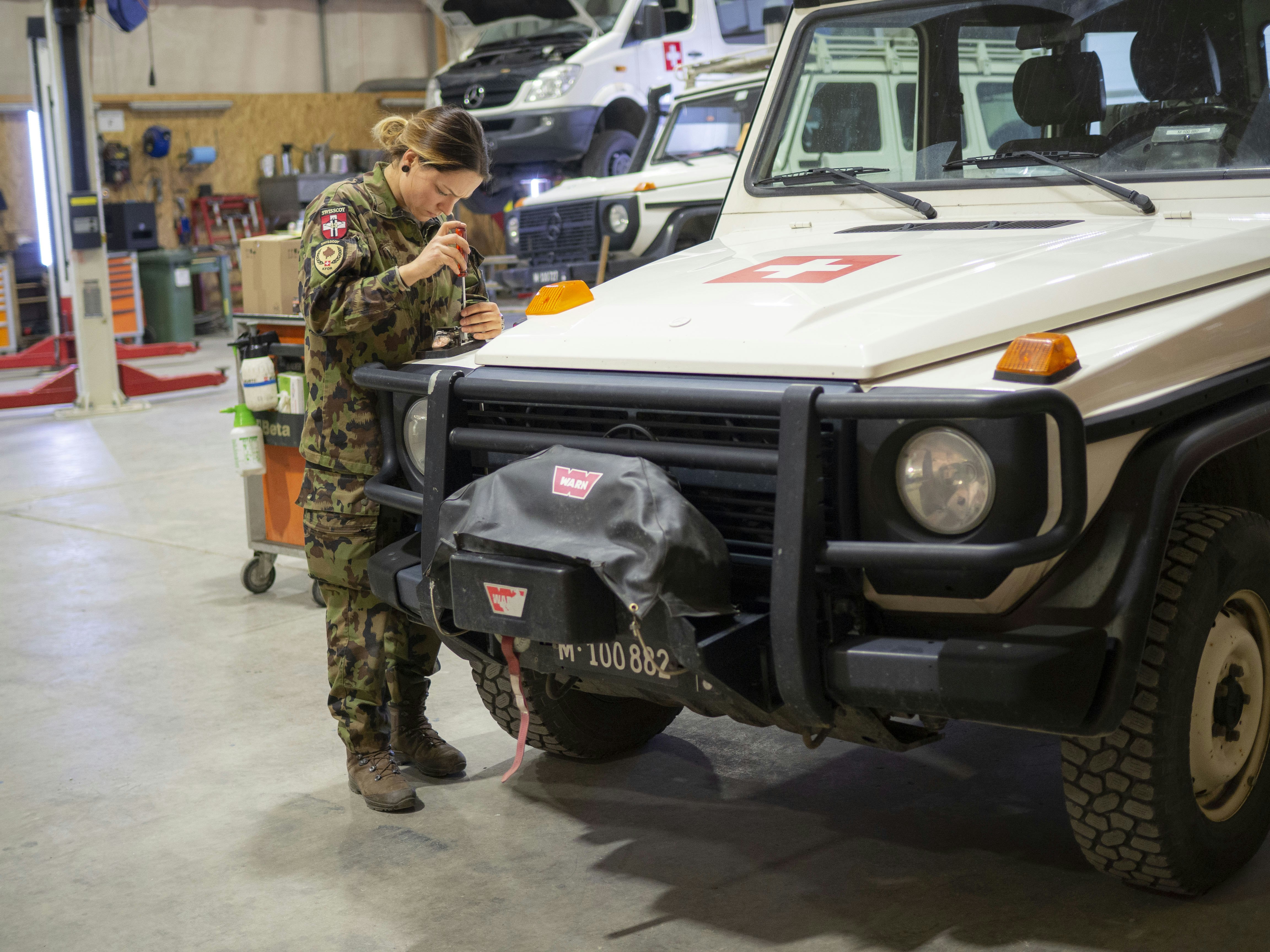 Lorsque quelque chose cloche sur un véhicule en engagement pour la SWISSCOY, vous intervenez. Vous, les spécialistes du groupe de maintenance (spéc maint), vous remplacez les serrures défectueuses, les vitres endommagées et les pneus qui n’ont plus assez de profil. La maintenance est un domaine masculin, du point de vue de Fabienne Frommelt (sdt), qui nous raconte son quotidien.