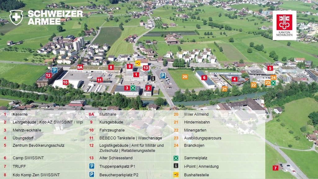 La place d’armes de Wil a une longue histoire. En 1775, le canton de Nidwald construit un grenier à blé, qui servira également de caserne à partir de 1857. En 1961, la caserne est fermée car elle ne répond plus aux normes. Dix ans plus tard, la nouvelle caserne est inaugurée et devient rapidement un lieu important pour l’instruction des soldats suisses. Le canton de Nidwald entame la première grande rénovation de la caserne en 1992 et ouvre un nouveau bâtiment d’instruction en 2003. Début 2004, à la suite d’une décision historique prise dans le cadre de la réforme Armée XXI, la promotion internationale de la paix est transférée en Suisse centrale et la place d’armes de Wil accueille le nouveau Centre de compétences SWISSINT. Depuis, l’infrastructure a été progressivement adaptée et agrandie. La caserne et la salle polyvalente d’origine ont été complétées par un bâtiment de commandement, un bâtiment d’instruction et un bâtiment de cours, une halle pour les véhicules et le matériel, une station-service, plusieurs bornes de recharge pour les véhicules électriques, un camp constitué de 234 conteneurs pour les bureaux, les chambres à coucher et les sanitaires et un village d’exercice. Le bâtiment logistique inauguré en 2022 abrite non seulement des salles de cours supplémentaires pour le Centre d’instruction SWISSINT, mais aussi l’arsenal actuel comprenant le poste de rétablissement, des entrepôts de la logistique cantonale, une autre halle pour véhicules ainsi que des bureaux pour l’office cantonal des affaires militaires et de la protection civile. C’est également dans l’enceinte de la place d’armes de Wil que se trouve depuis 2011 le centre de protection de la population, qui sert de base logistique et de site pour les installations de conduite cantonales.