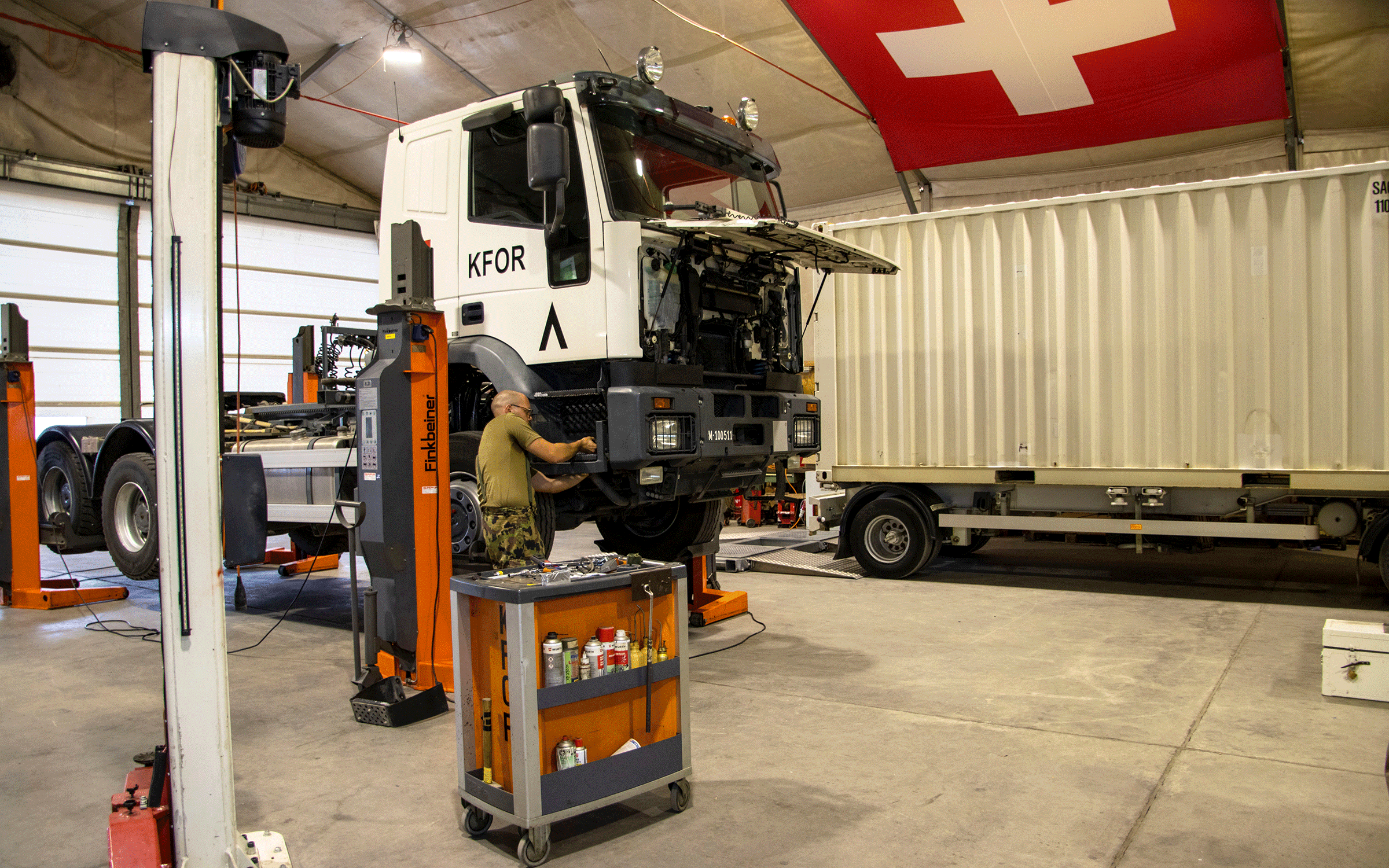 Il gruppo addetto alla manutenzione (man) nel Camp Novo Selo è composto da dodici persone. Il sgt Ege Arslan ha svolto un tirocinio come meccanico e una formazione supplementare come meccatronico. Ha svolto la sua seconda formazione triennale presso il Centro logistico dell’esercito a Bellinzona. Conosce dunque i veicoli militari sia come autista sia come meccanico e presenta quindi requisiti ottimali. «Molti degli autocarri utilizzati nel settore d’impiego sono blindati, e ognuno di questi veicoli è configurato diversamente e quindi un pezzo unico. Questo rende il lavoro impegnativo e interessante». L’impiego consente a Ege Arslan di approfondire e ampliare le sue competenze professionali. Nel settore d’impiego ognuno ha una sua specializzazione e viene quindi impiegato di conseguenza dal capogruppo. «Anche se io sono addetto agli autocarri e ai veicoli blindati, ci aiutiamo a vicenda. Al bisogno lavoro quindi anche sui veicoli della classe G o sugli Sprinter, e naturalmente anche gli altri meccanici danno man forte a noi quando è necessario. Per me questo è uno degli aspetti che rendono il mio lavoro interessante e variato». Come effetto collaterale, grazie all’aiuto e ai consigli degli altri, il sgt Ege Arslan acquisisce nuove competenze che potrà utilizzare nella sua futura vita professionale.