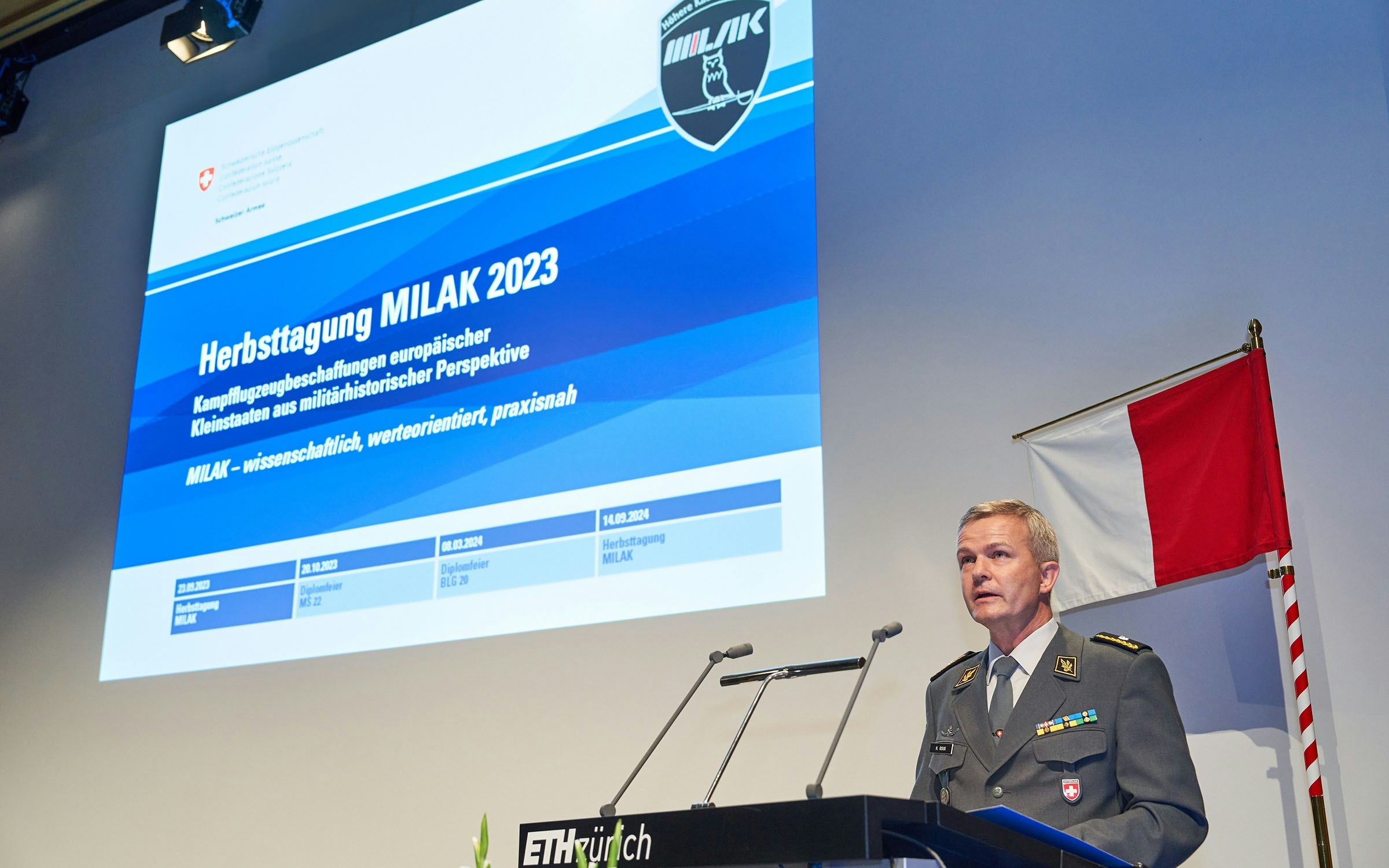 Michael Olsansky ha definito il dibattito locale sull’acquisto degli F-35 una «brutta copia». Infatti, gli sono tornate in mente le discussioni del 2014 sull’acquisto dei Gripen previsto. Insieme alla votazione del 1993 sugli F/A-18, la Svizzera ha avuto tre votazioni popolari su aerei da combattimento nell’arco di tre decenni. Queste circostanze hanno determinato la scelta dei temi della conferenza autunnale dell’ACMIL di quest’anno. Da una prospettiva storico-militare, a partire dagli anni Settanta sono stati confrontati gli acquisti di aerei da combattimento di piccoli Stati europei, ad esempio Austria, Belgio e Danimarca. Il comandante, brigadiere Hugo Roux, ha avuto l’occasione di accogliere numerosi ospiti, relatori internazionali e partecipanti alla tavola rotonda rinomati.
