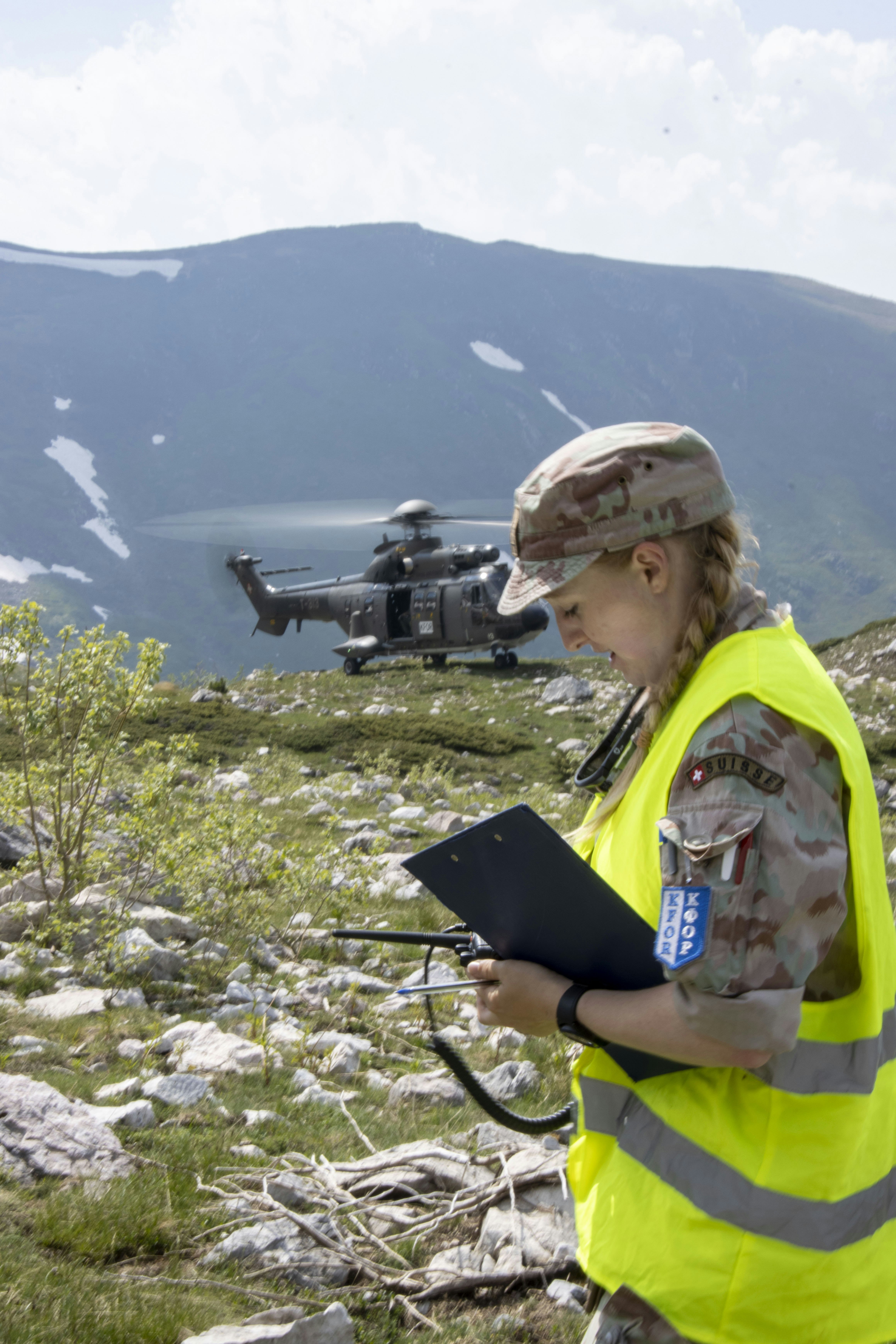 «Ho iniziato circa un mese fa a pianificare quest’esercitazione. Poiché si trattava della nostra prima esercitazione con il Super Puma, sono stata istruita dal G3 Air sugli aspetti da tenere particolarmente in considerazione. Per pianificare un’esercitazione di questo tipo con il distaccamento di trasporto aereo (dist TA) e con l’elicottero è necessario inoltrare una richiesta all’attenzione della KFOR. Due giorni prima dell’esercitazione i piloti e i loadmaster hanno organizzato un briefing per noi, durante il quale ci hanno mostrato come salire e scendere dal Super Puma e a cosa dovevamo prestare particolare attenzione. Il briefing è stato importante perché l’esercitazione con il Super Puma era una novità per noi. È fondamentale avvicinarsi all’elicottero da davanti, in modo che i piloti possano vederti, e soprattutto seguire le istruzioni del loadmaster. Come per tutte le emergenze, è necessario mantenere il sangue freddo nonostante i tempi strettissimi: una qualsiasi svista potrebbe mettere a repentaglio l’impiego. Se viene utilizzato un elicottero è importante anche la collaborazione con altre unità organizzative: al suo interno la comunicazione è particolarmente difficile a causa del rumore.»