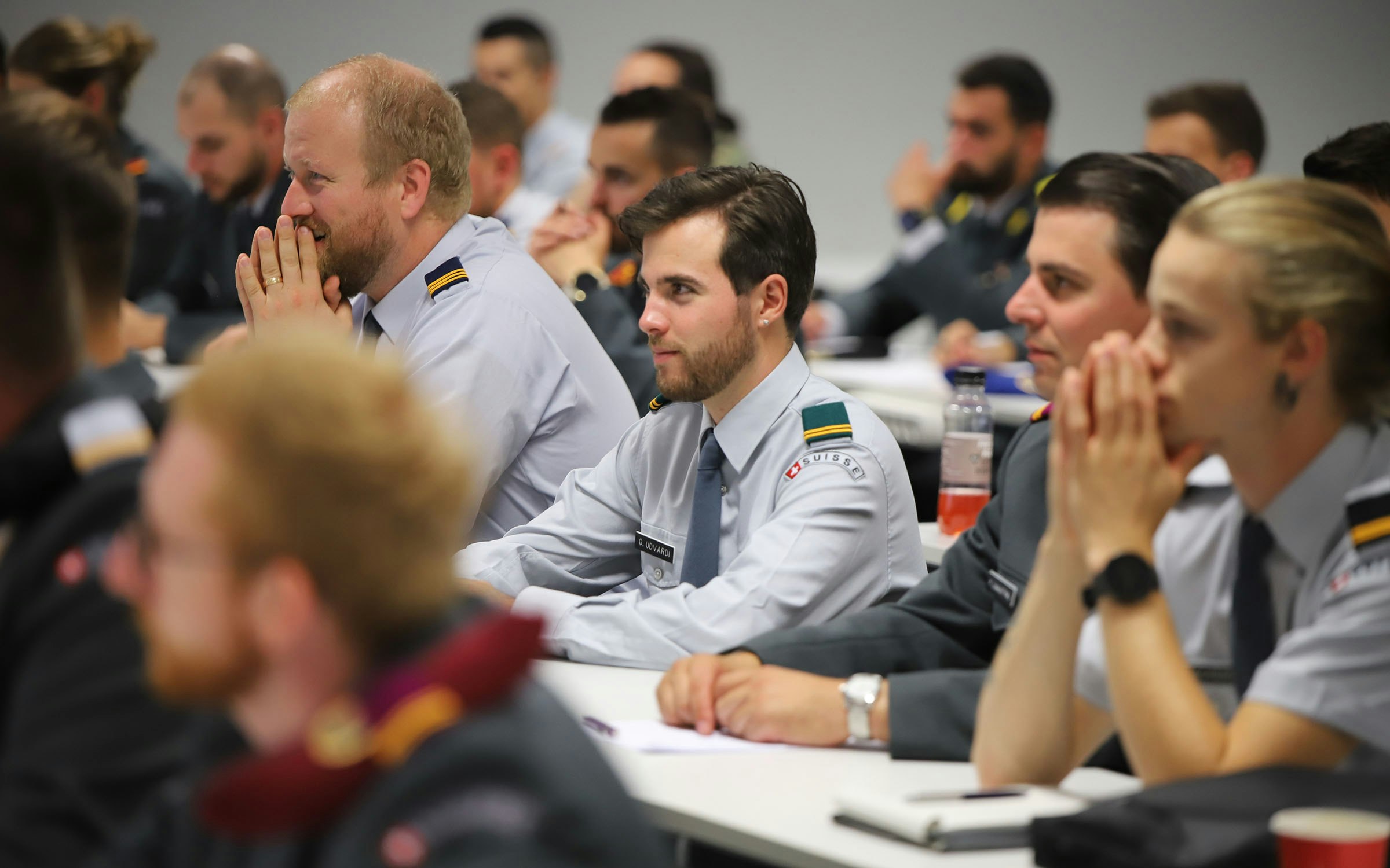 Ancora fino al 16 settembre 2022 si sta svolgendo, presso la Scuola centrale dell’esercito a Lucerna, il corso di formazione alla condotta unità 3/22 della durata di quattro settimane. Per la prima volta i partecipanti hanno la possibilità di conseguire un certificato universitario in questo corso. 18 di loro approfittano della possibilità di unire le competenze di condotta civili e militari.