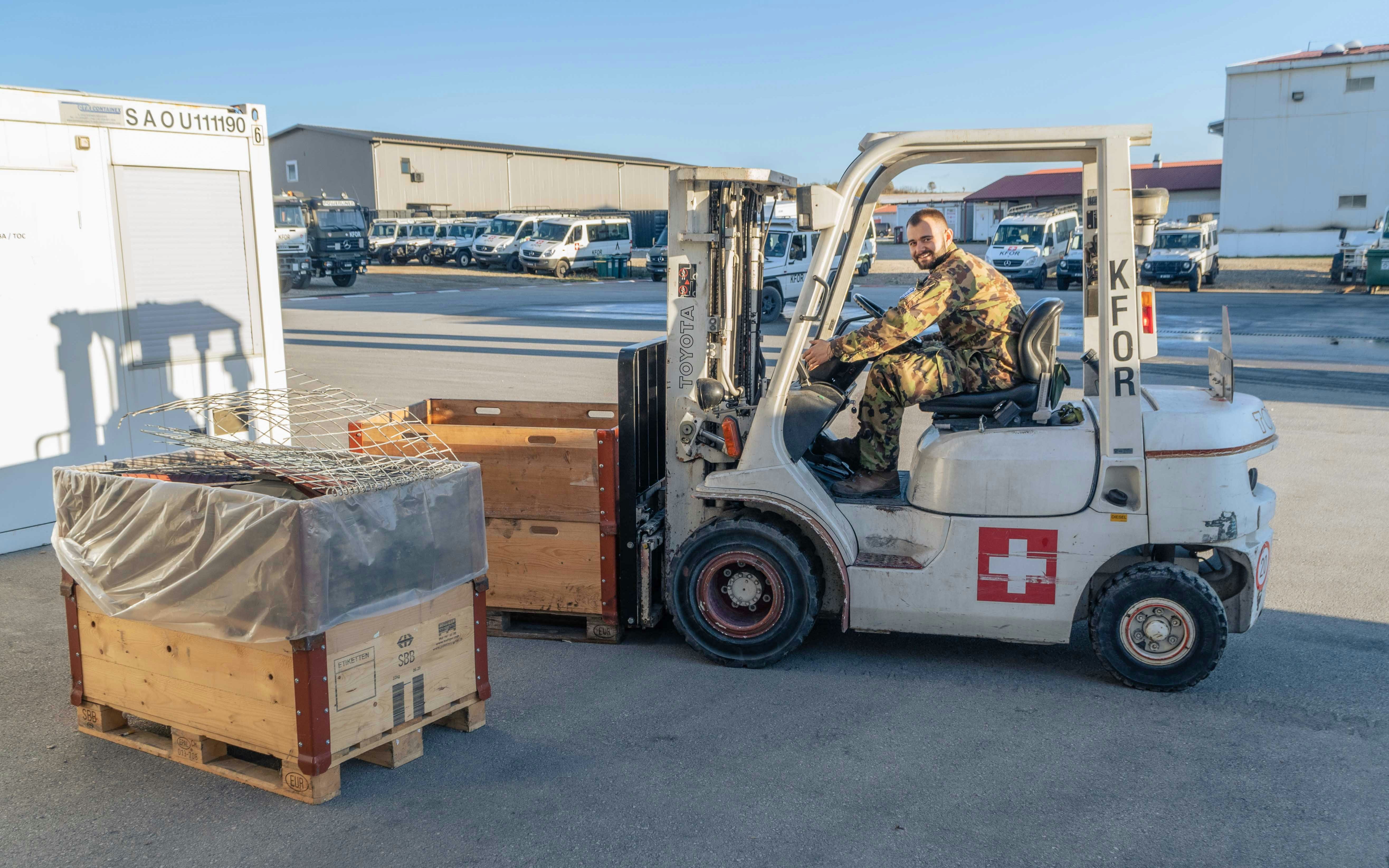Che si tratti di fondue di formaggio per la SWISS HOUSE, di medicamenti per il Medical Team, di munizioni, di materiale d’ufficio o di carta igienica, il gruppo di rifornimento provvede affinché la vita e il lavoro nel 49° contingente SWISSCOY si svolgano senza problemi.