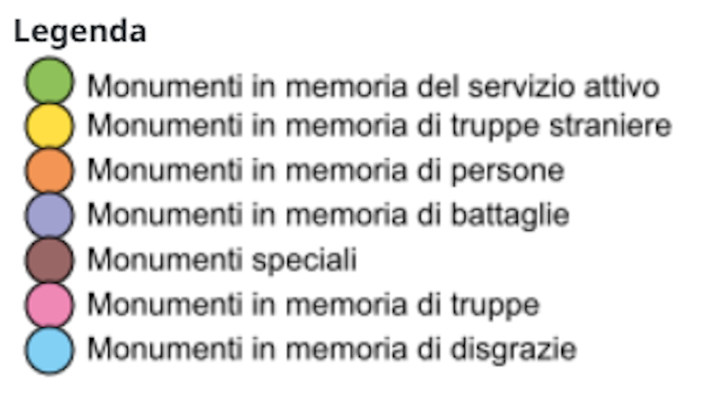 Il presente inventario mostra il numero, le caratteristiche e la varietà dei monumenti commemorativi dell'esercito e di guerra in Svizzera. In formato digitale, offre una panoramica delle tradizioni commemorative, che spaziano dai monumenti visibili negli spazi pubblici e dedicati a battaglie e soldati, ai segni personali e discreti legati al ricordo di singoli camerati.