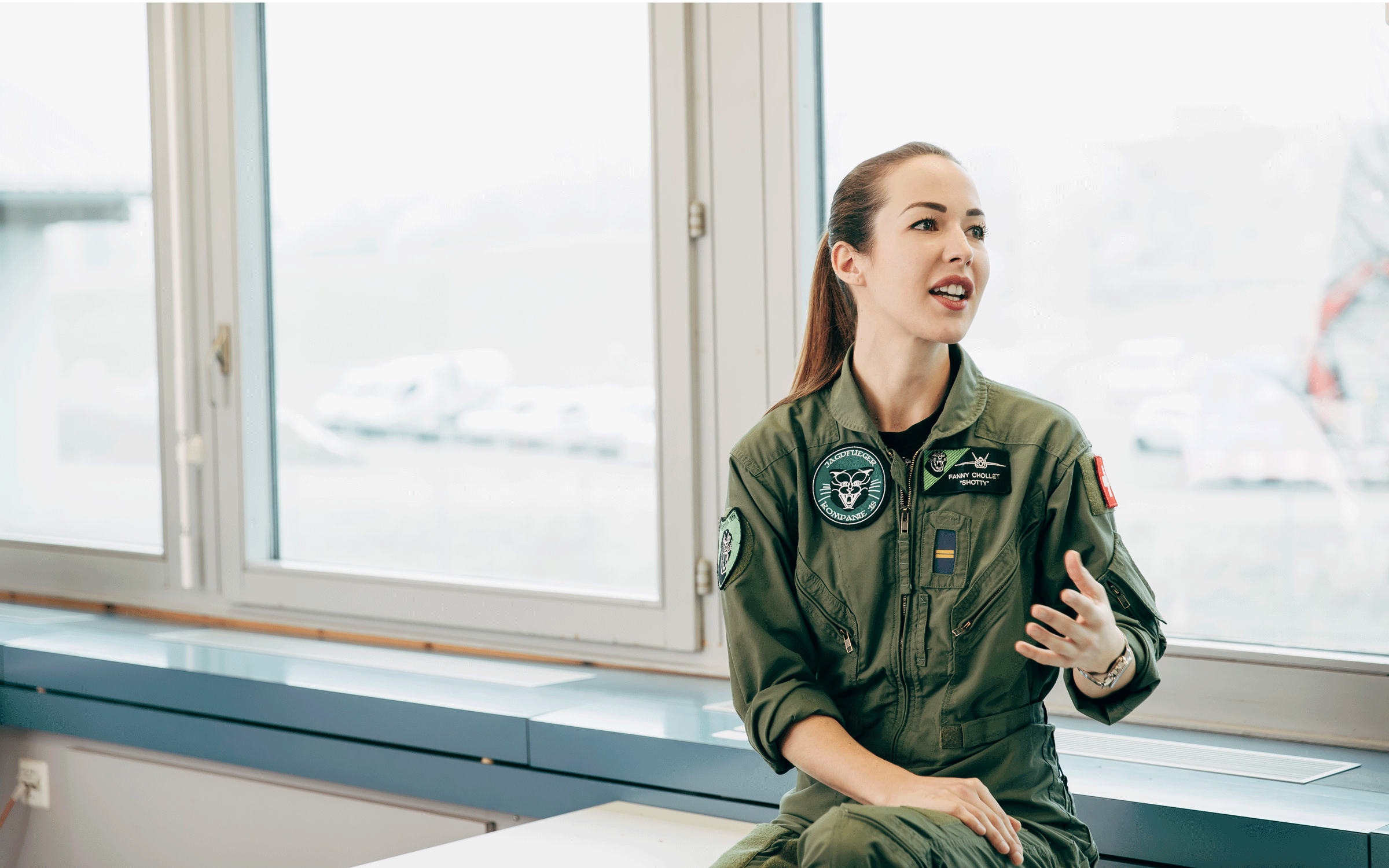 Nel 2012 ha cominciato la formazione di pilota dopo aver preso parte al programma SPHAIR nel 2009. Dieci anni dopo siede nel cockpit di un F/A-18 Hornet e protegge lo spazio aereo elvetico. Il Primotenente Fanny «Shotty» Chollet è la prima pilota di aerei da combattimento della Svizzera.