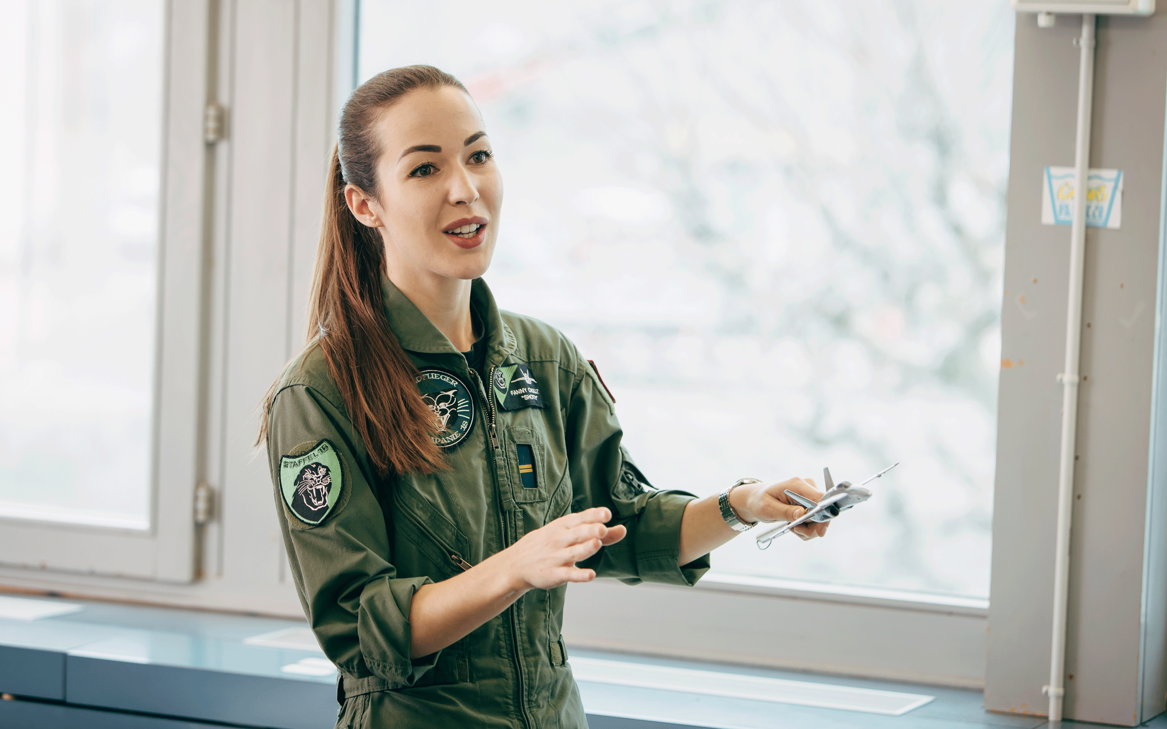 Dieci anni dopo la sua decisione di diventare pilota da combattimento, da gennaio la ventottenne siede nella cabina di pilotaggio di un F/A-18 Hornet e prende parte al servizio aereo della 18° squadriglia tra i cui compiti, oltre all'addestramento al combattimento in volo, vi è anche quello di polizia aerea. Come logica conseguenza per la sua carriera Shotty seguirà presto ulteriori formazioni: un corso di condotta per capitani, campagne d’allenamento internazionale nonché l'addestramento tattico quale leader di una formazione di due aerei (section lead). “Shotty" raccomanda ai giovani svizzeri di fare il primo passo verso la terza dimensione con SPHAIR, poiché è qui che si debutta nell'aviazione militare e civile. Il consiglio della prima pilota donna di aerei da combattimento svizzera: "Siate motivati, impegnati e sempre preparati. Essere un pilota militare è una passione."